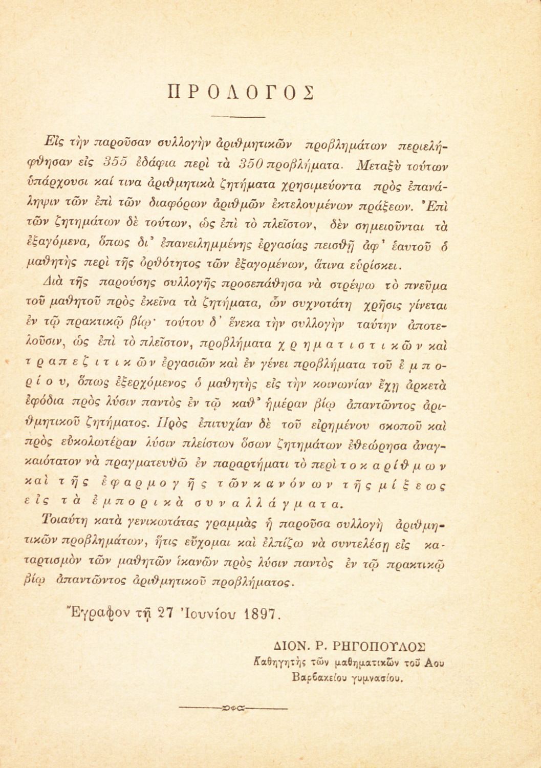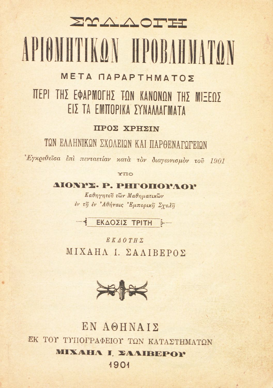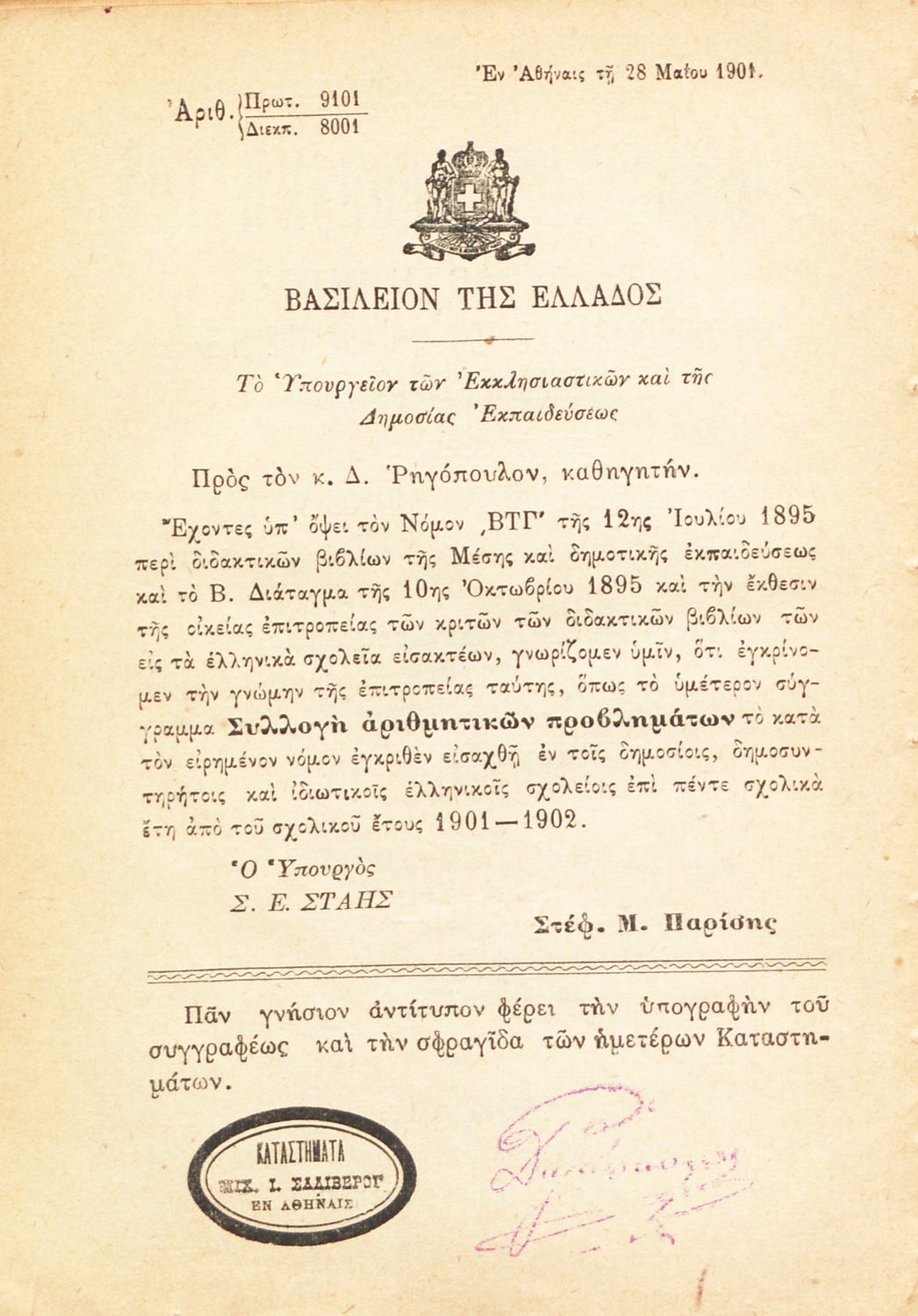 Εκδότης: Τυπογραφείο: Ραφτάνης Παπαγεωργίου Έτος έκδοσης: 1903 Τόπος έκδοσης: Αθήνα Υπουργική απόφαση / Σύμβαση: 9733/21-6-1903 Έτος έγκρισης: 1903 |