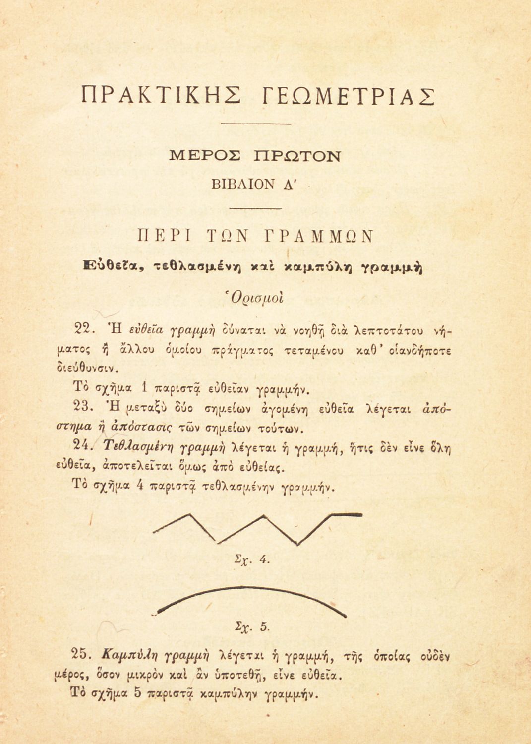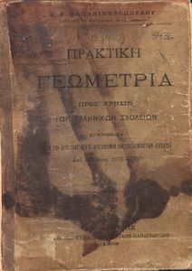 Κωδικός αναγνώρισης: 20-03436 Τίτλος: Πρακτική γεωμετρία προς χρήσιν των Ελληνικών Σχολείων Συγγραφέας: Κ. Ξ. Παπανικητόπουλος Μέγεθος και υπόστρωμα: Σχολικό εγχειρίδιο, 18εκ., σκληρό εξώφυλλο, 180 σελίδες. Σχεδιαγράμματα (ασπρόμαυρα). |
