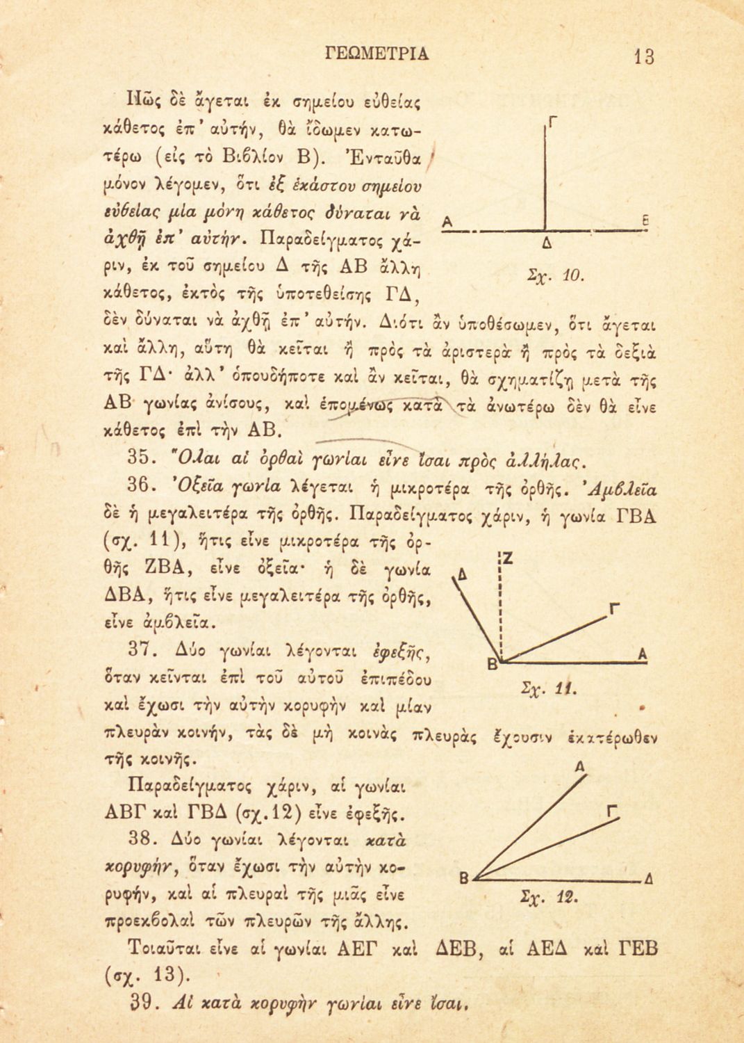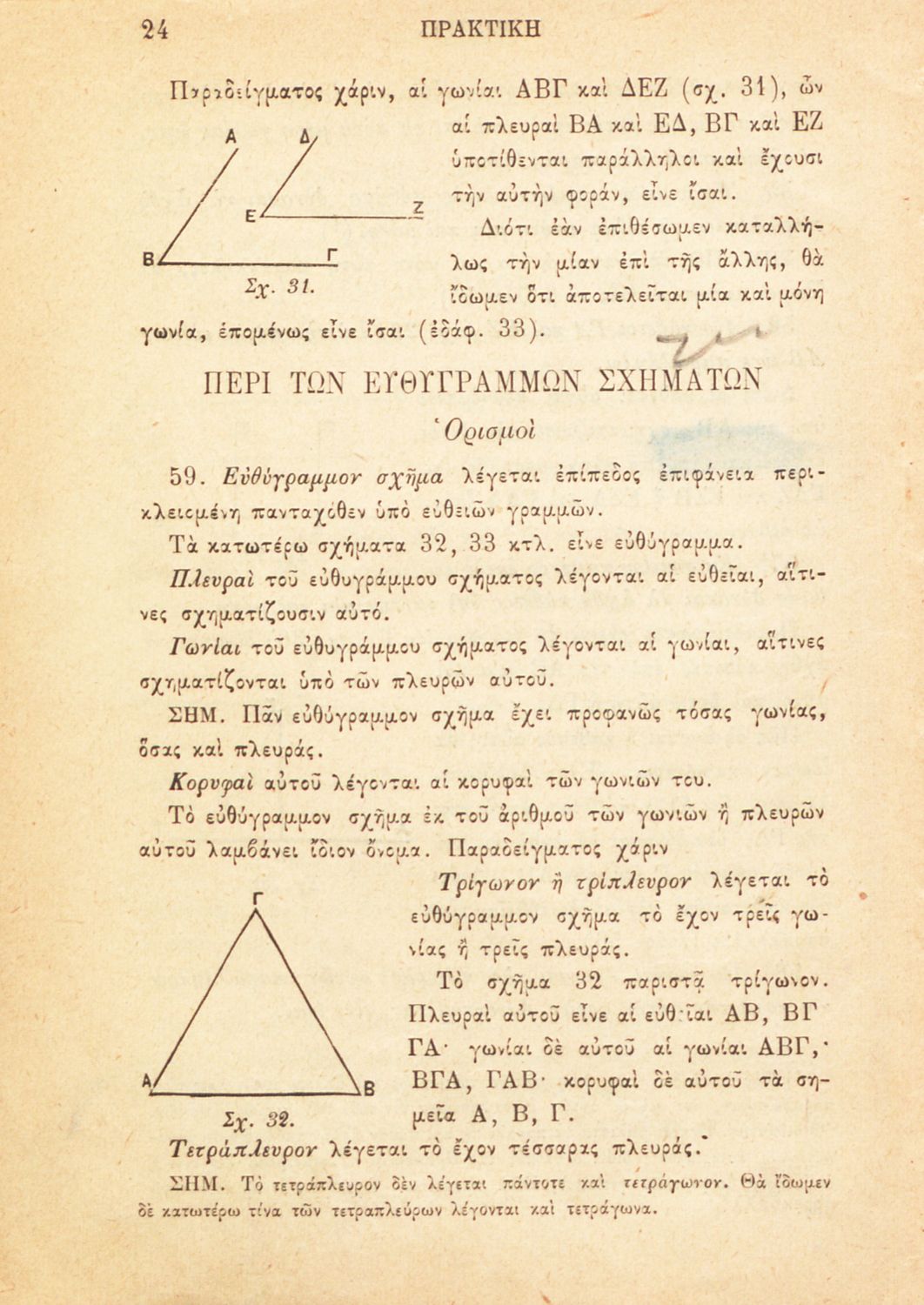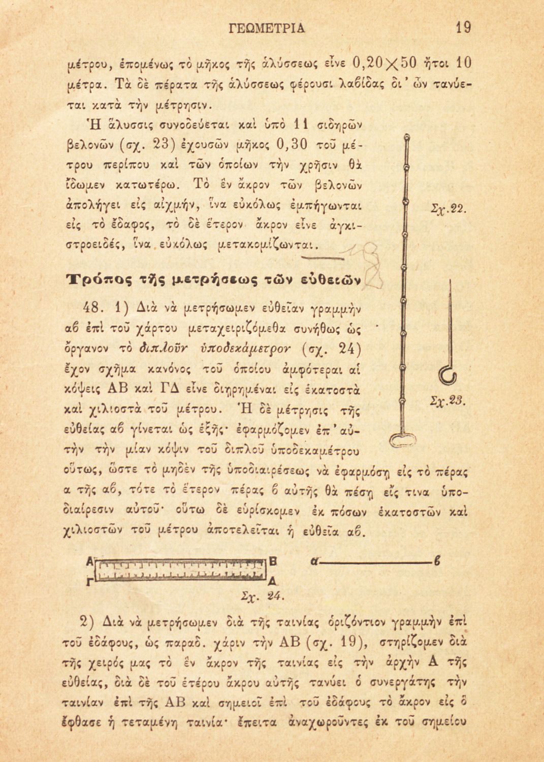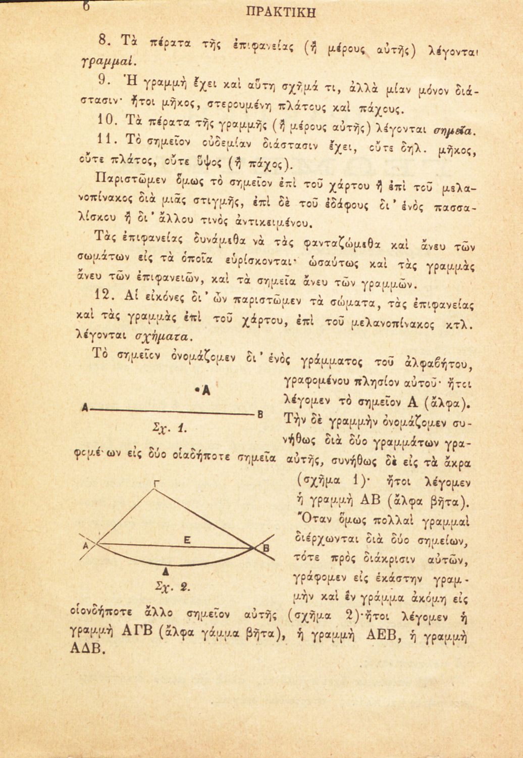 Σχολικό εγχειρίδιο Γεωμετρίας για τα Ελληνικά Σχολεία που περιέχει θεωρία, προβλήματα και ασκήσεις και εστιάζει στα γεωμετρικά σχήματα και σώματα και τη μέτρησή τους.