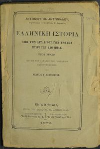 Ελληνική ιστορία από των αρχαιοτάτων χρόνων μέχρι των καθ' ημάς προς χρήσιν των εις την Δ΄ τάξιν των Γυμνασίων μαθητευομένων