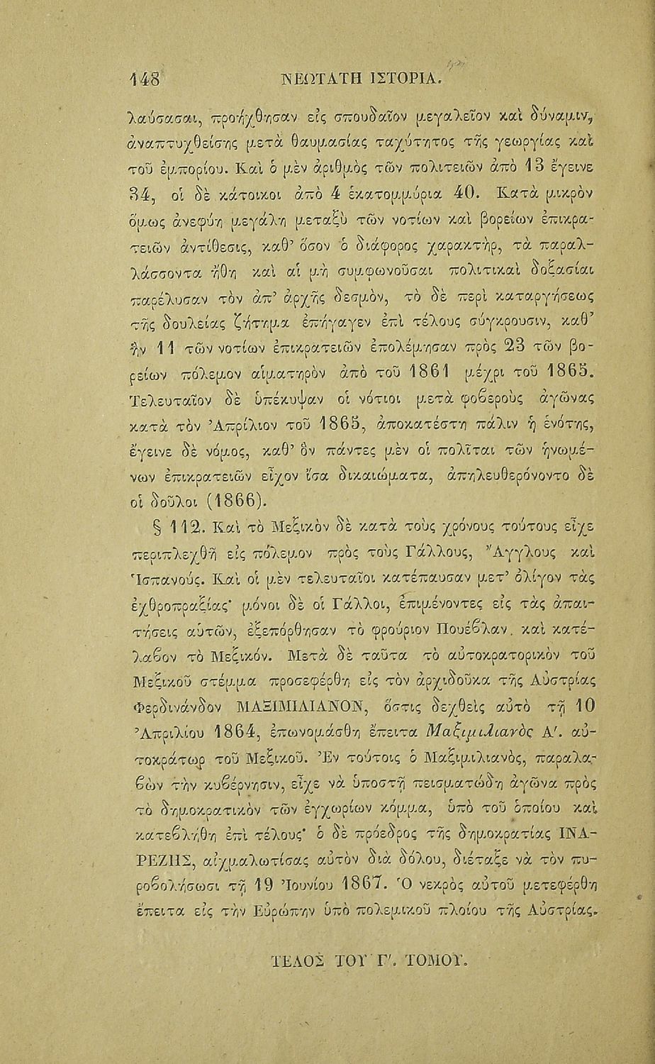 LDR 01585 2200193 4500 035 ## _a20-03443 040 ## _aΚΕΝΕΚ - Εταιρεία Σπουδών Νεοελληνικού Πολιτισμού και Παιδείας 041 ## _ael 100 ## _aΓεωρ. Ουηβέρος (George Weber) _aΑ. Ι. Αντωνιάδης (απόδοση) 110 ## _a3443 245 0# _aΣύνοψις της παγκοσμίου ιστορίας συγγραφείσα μεν γερμανιστί υπό του Γεωρ. Ουηβέρου, μεταγλωττισθείσα υπό Α. Ι. Αντωνιάδου (βιβλίον Γ΄ και Δ΄ ). Ιστορία των νέων και νεωτάτων χρόνων 260 ## _aΑθήνα _bΚ. Αντωνιάδης _c1876 300 ## _a164 _c20 520 ## _aΣχολικό εγχειρίδιο Ιστορίας για τη Γ΄ Γυμνασίου που περιλαμβάνει τα βιβλία Γ΄ και Δ΄ της γερμανικής έκδοσης και καλύπτει την περίοδο από την εφεύρεση της τυπογραφίας και Αμερικανική Επανάσταση μέχρι την προσάρτηση της Θεσσαλίας και της Ηπείρου στην Ελλάδα.. 521 ## _aΓ' Γυμνασίου 522 ## _aΕλλάδα 546 ## _aΚαθαρεύουσα 563 ## _aΜαλακό Εξώφυλλο 650 #4 _aΑμερικανική επανάσταση _aΓαλλική Επανάσταση _aΕλληνική Επανάσταση _aΚριμαϊκός Πόλεμος _aΝαπολέων