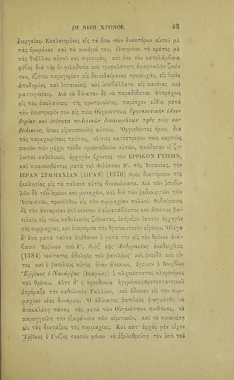 Σχολικό εγχειρίδιο Ιστορίας που εστιάζει στους "νέους χρόνους" και καλύπτει την περίοδο από την εφεύρεση της τυπογραφίας μέχρι και την προσάρτηση της Θεσσαλίας και της Ηπείρου στην Ελλάδα.