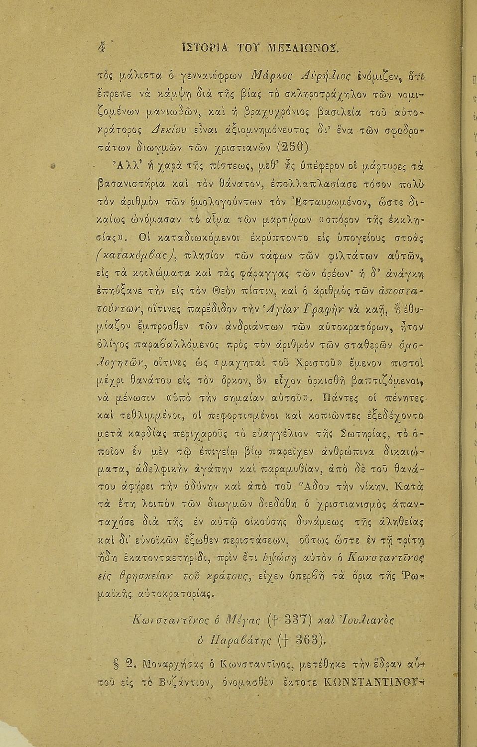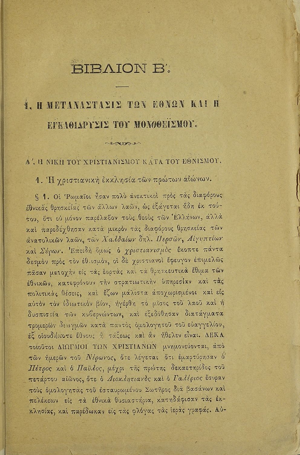 Βαθμίδα εκπαίδευσης: Δευτεροβάθμια Τάξη: Β' Γυμνασίου Μάθημα: Ιστορία Γλώσσα: Καθαρεύουσα Παρουσίαση περιεχομένου: Σχολικό εγχειρίδιο Ιστορίας Β΄ Γυμνασίου που περιλαμβάνει το βιβλίο Β΄ της γερμανικής έκδοσης και καλύπτει την περίοδο από την άνοδο του Μ. Κωνσταντίνου στο θρόνο μέχρι την άλωση της Κωνσταντινούπολης. |