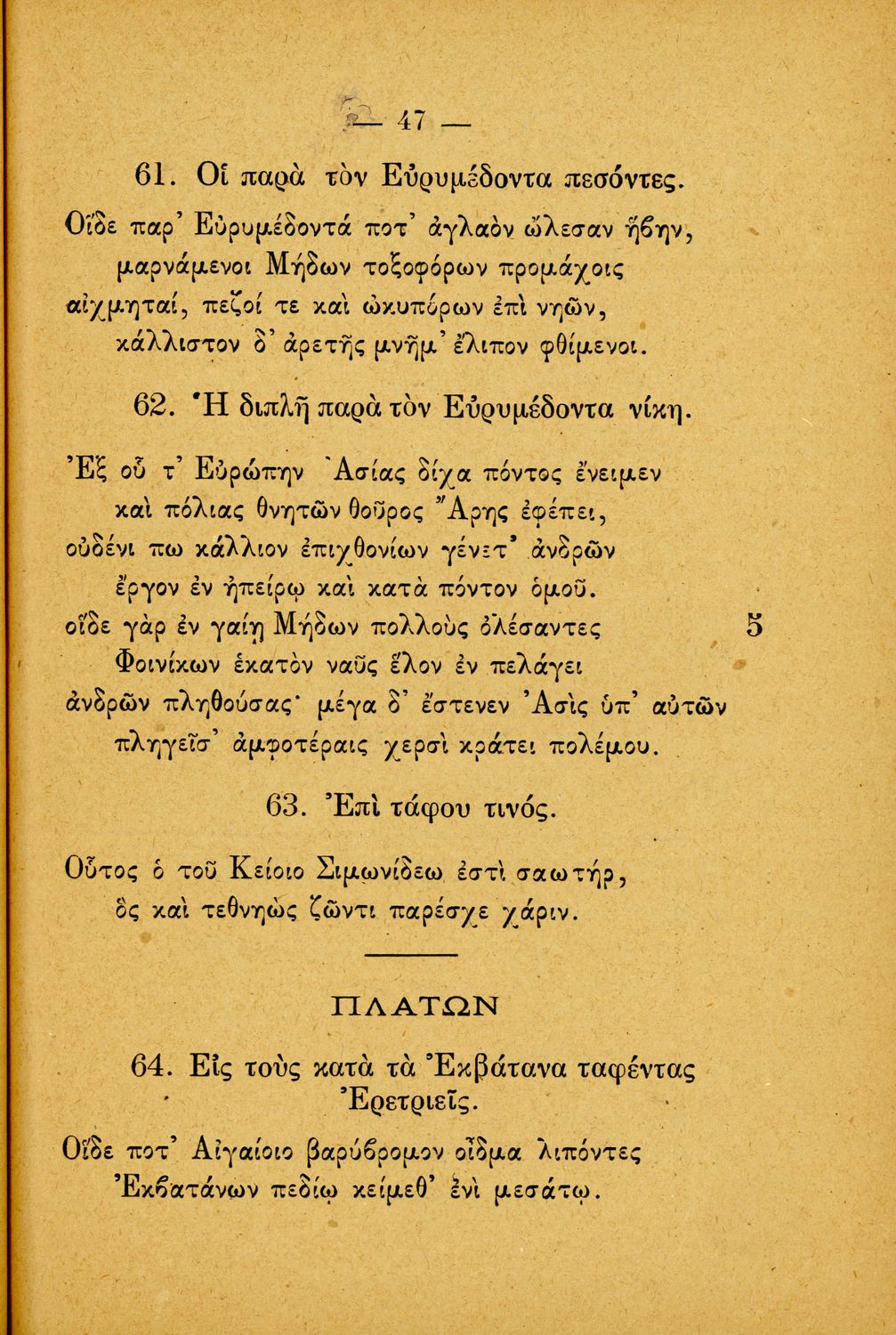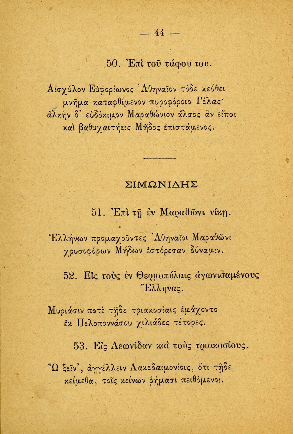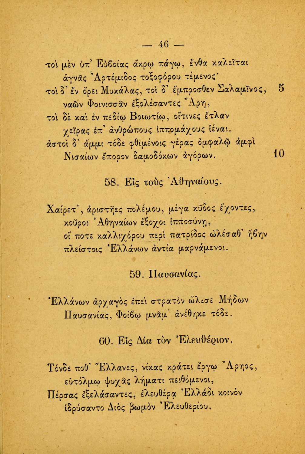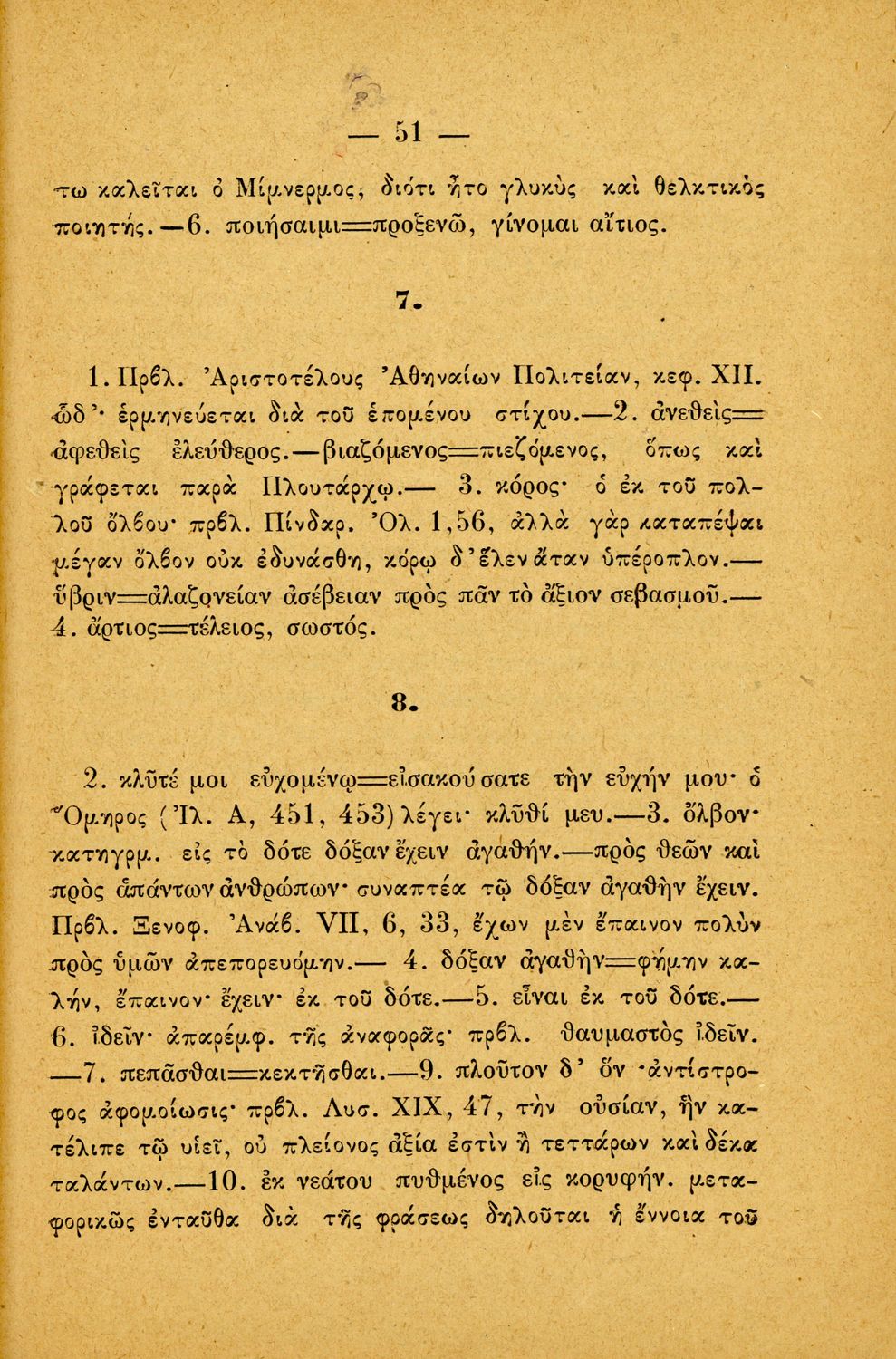 Σχολικό εγχειρίδιο Αρχαίων Ελληνικών Γ΄ Γυμνασίου που περιλαμβάνει αποσπάσματα έργων αρχαίων Ελλήνων λυρικών, πολιτικές και γνωμικές ελεγείες, περιγραφές συμποσίων, δημοτικά άσματα, επιγράμματα κ.α. Περιέχει και υπόμνημα με ερμηνευτικά, πραγματολογικά, γλωσσικά και γραμματικά σχόλια.