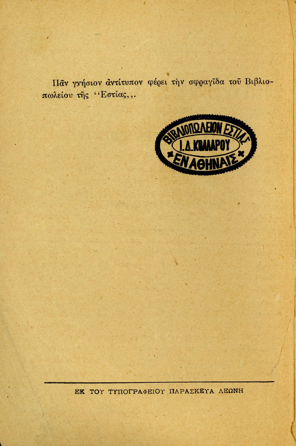 Εκδότης: Ιωάννης Δ. Κολλάρος, Βιβλιοπωλείο της "Εστίας"