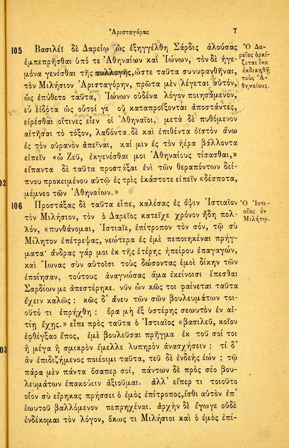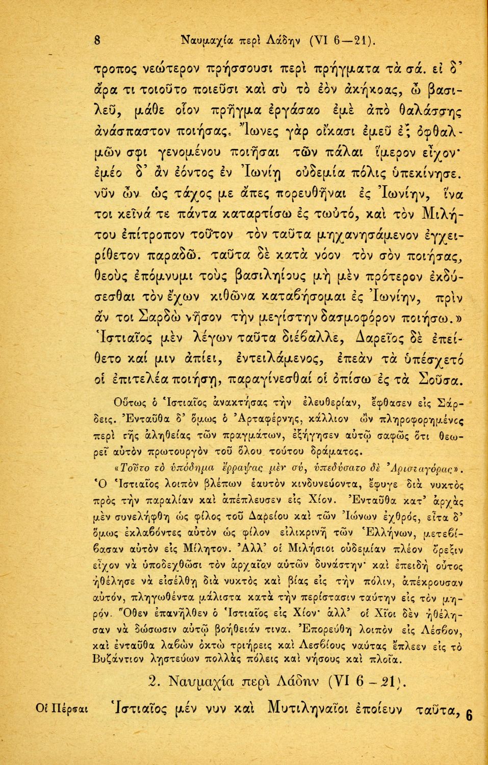 Σχολικό εγχειρίδιο Αρχαίων Ελληνικών Α΄ Γυμνασίου που περιλαμβάνει εισαγωγικά σχόλια στην ζωή και το έργο του Ηρόδοτου με έμφαση στη διάλεκτό του και στα γραμματικά της φαινόμενα, και ερμηνευτικά και πραγματολογικά/γλωσσικά σχόλια.
