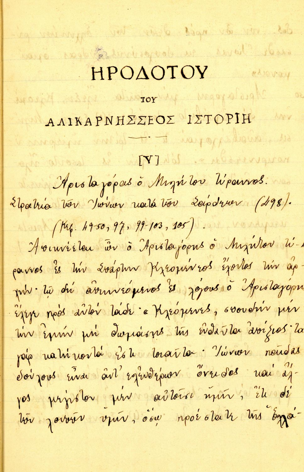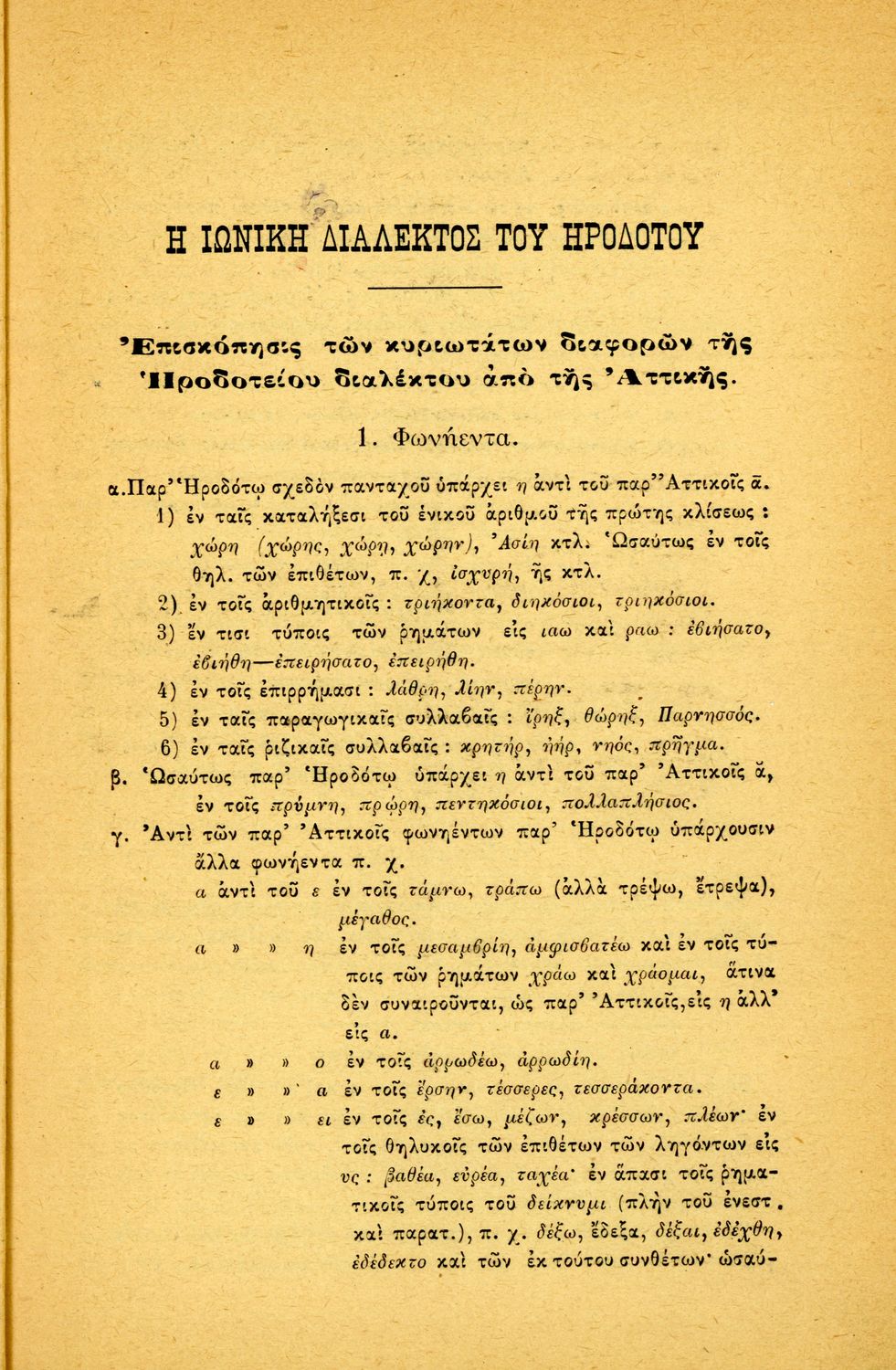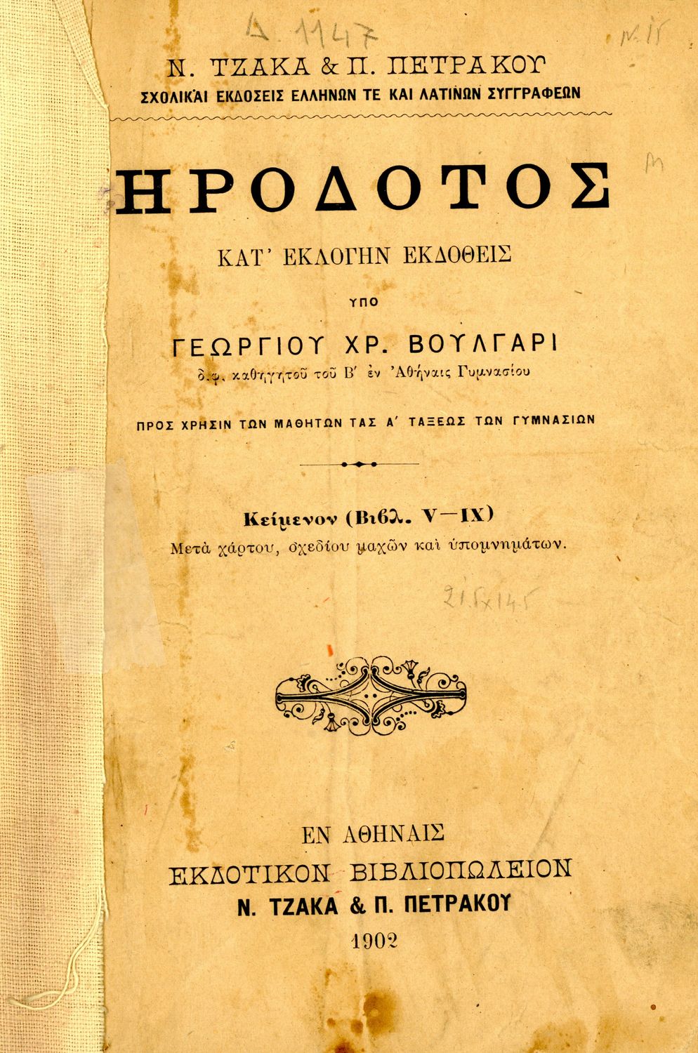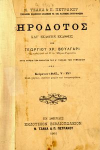 Τίτλος: Ηρόδοτος κατ' εκλογήν εκδοθείς διά την Α΄ τάξιν των Γυμνασίων, κείμενον (Βιβλ. V - IX)