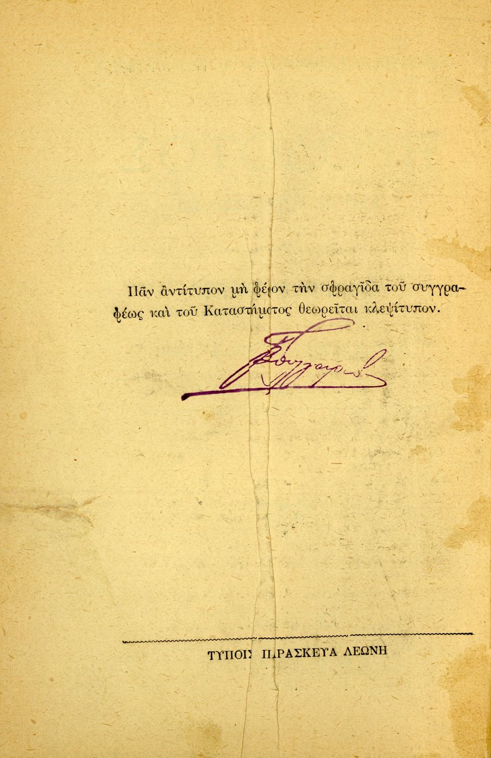 Εκδότης: Βιβλιοπωλείο: Ν. Τζάκας και Π. Πετράκος