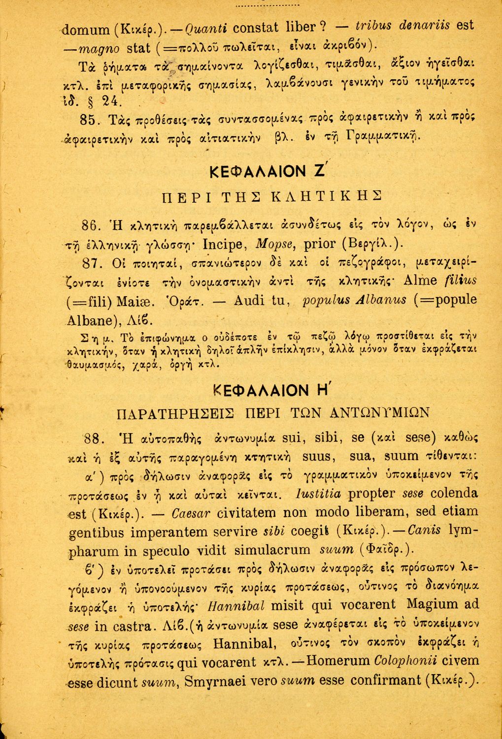 Σχολικό εγχειρίδιο Λατινικών Α΄, Β΄, Γ' Γυμνασίου που περιλαμβάνει γραμματική και συντακτικό και είναι χωρισμένο σε φθογγολογικό, τυπολογικό και ετυμολογικό μέρος.