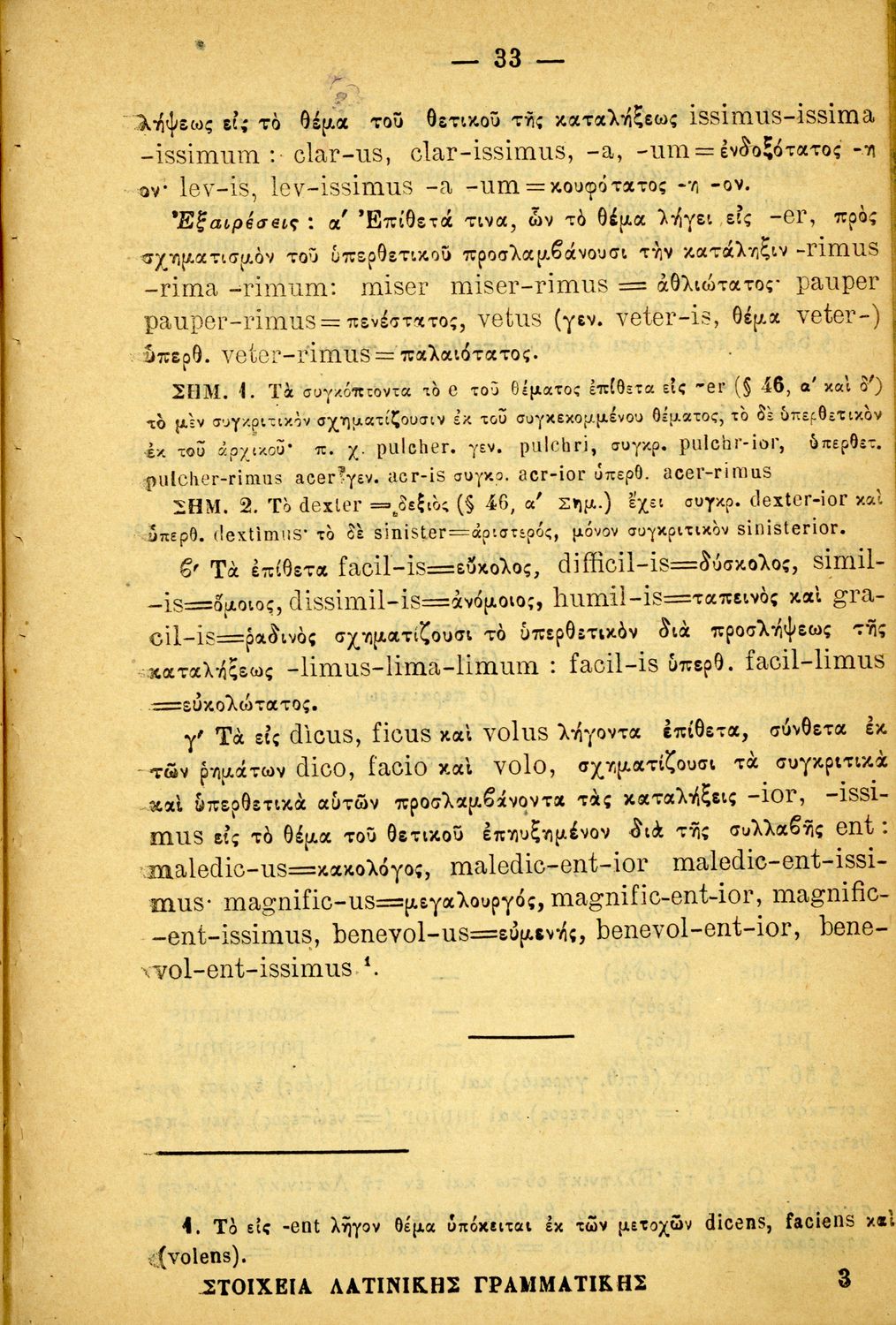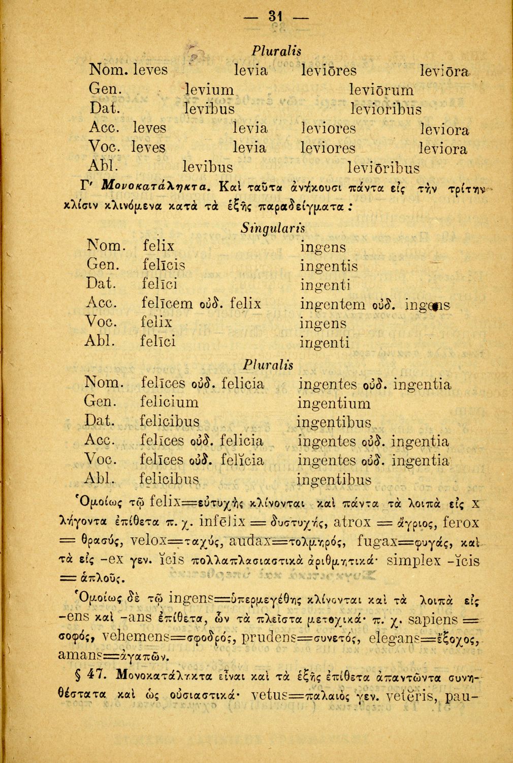 Σχολικό εγχειρίδιο Λατινικών για τα Ελληνικά Σχολεία που περιλαμβάνει τη γραμματική της λατινικής γλώσσας.