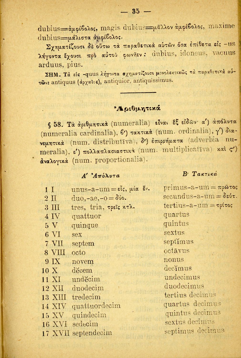 520 ## _aΣχολικό εγχειρίδιο Λατινικών για τα Ελληνικά Σχολεία που περιλαμβάνει τη γραμματική της λατινικής γλώσσας.