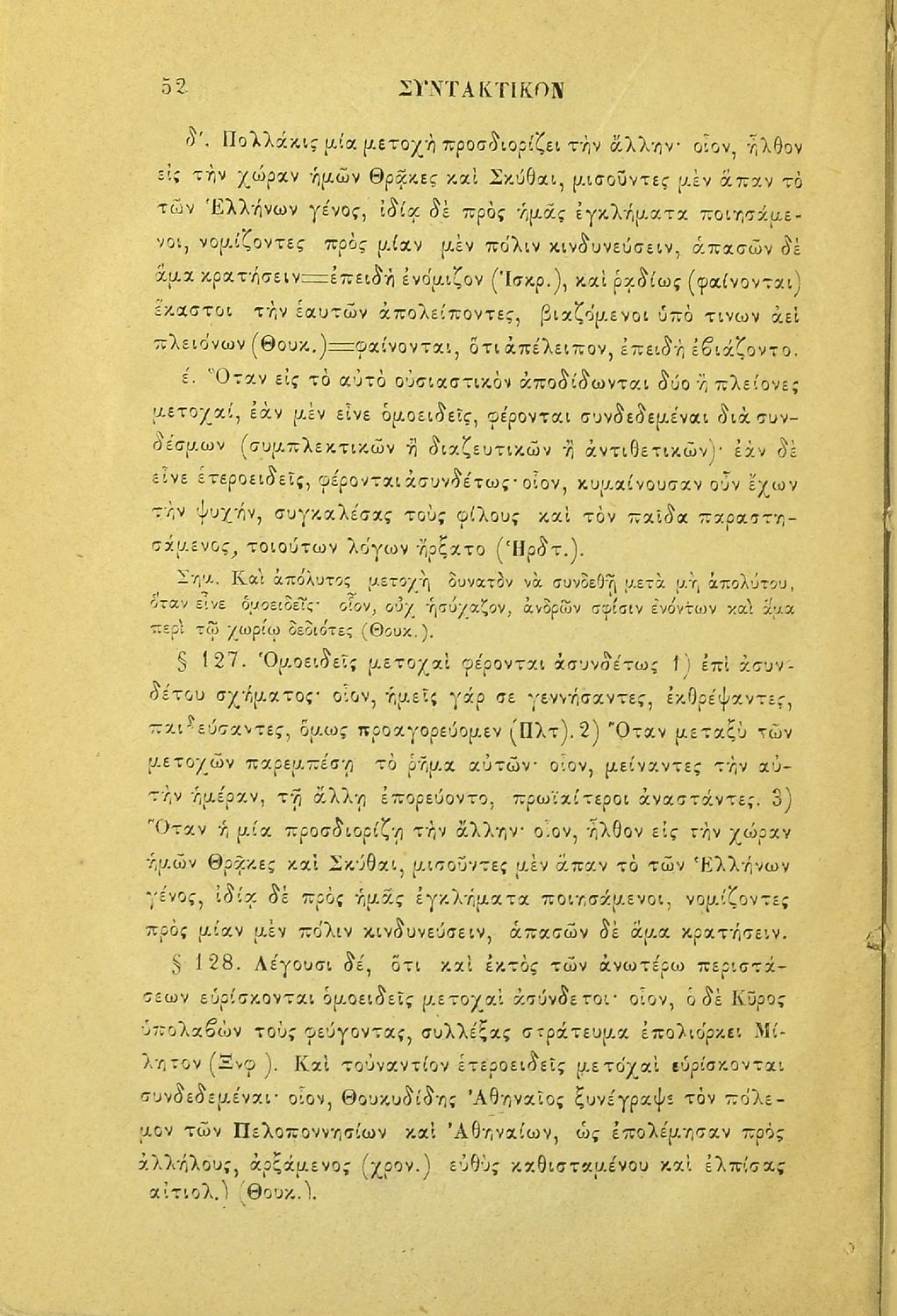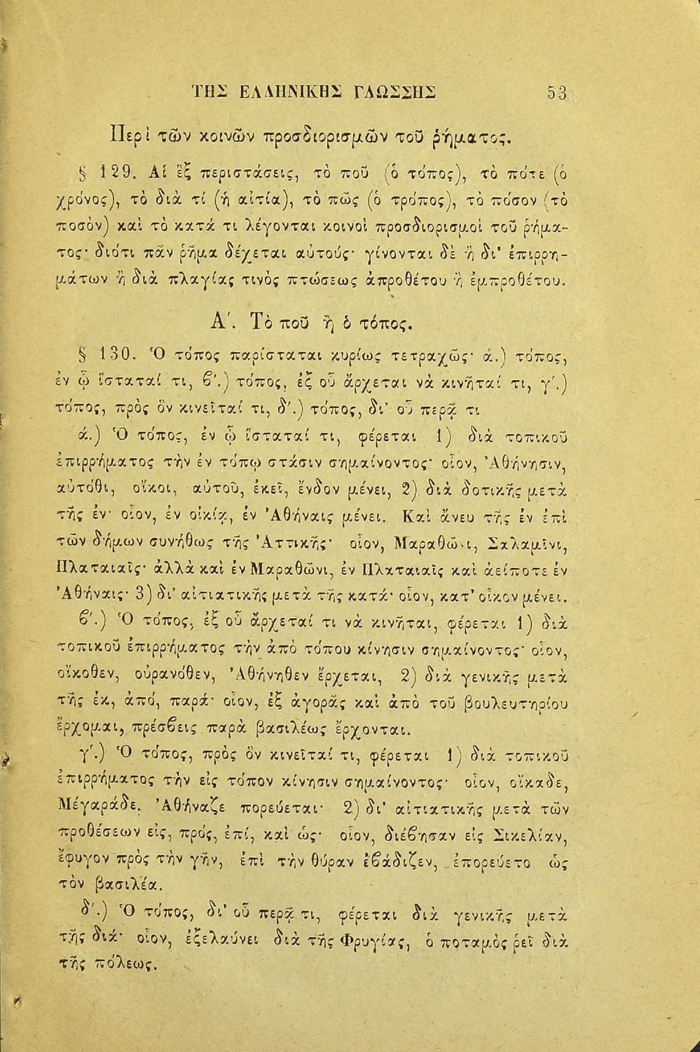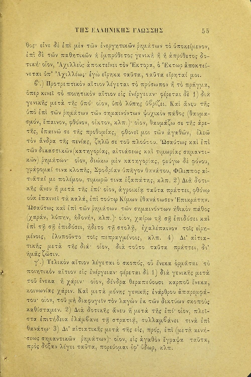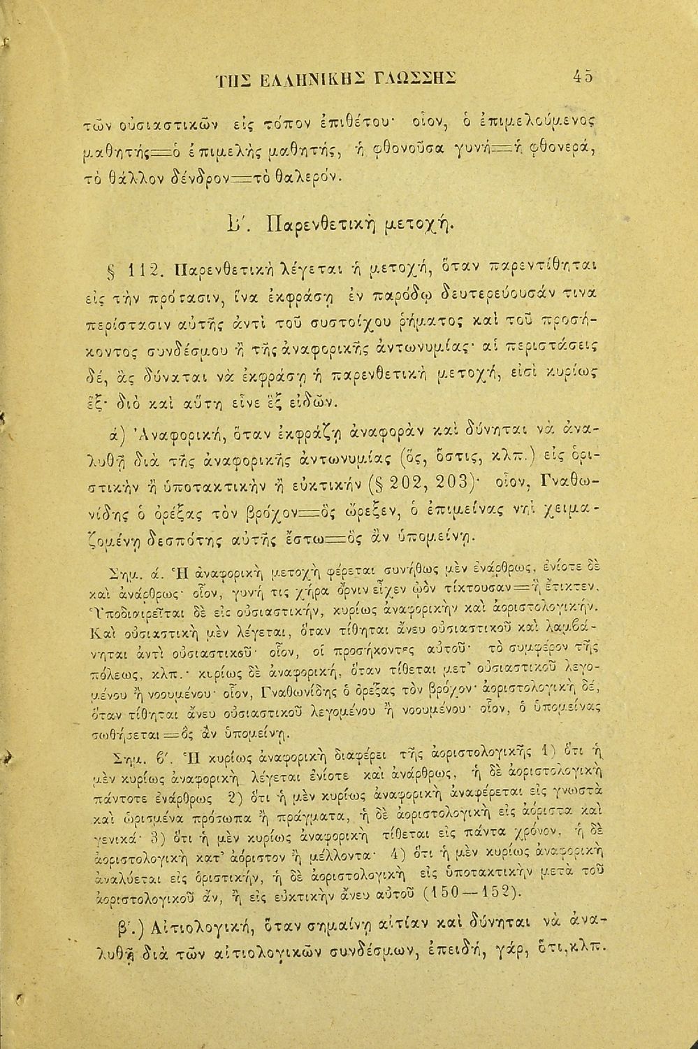 Σχολικό εγχειρίδιο Αρχαίων Ελληνικών για τους μαθητές των Ελληνικών Σχολείων και Παρθεναγωγείων που εξετάζει τα μέρη του λόγου και την σύνταξή τους.