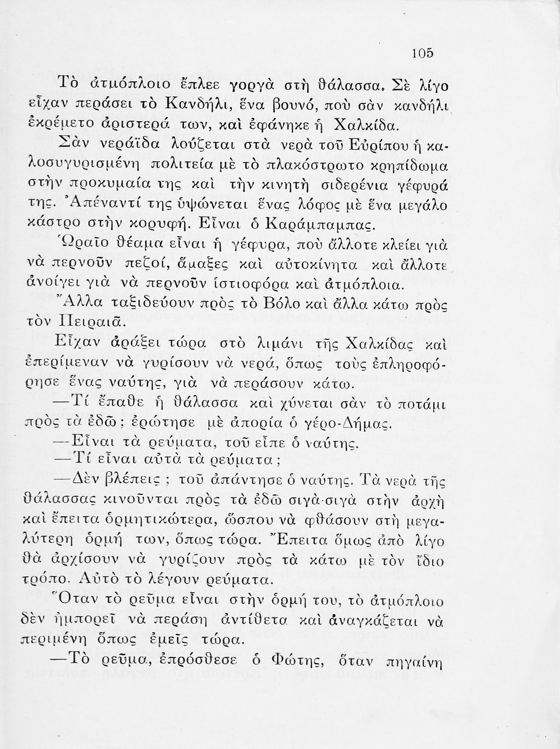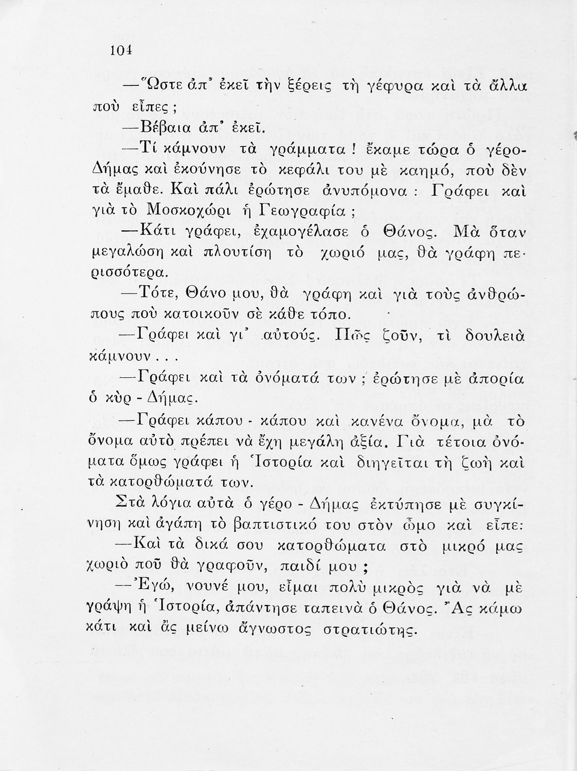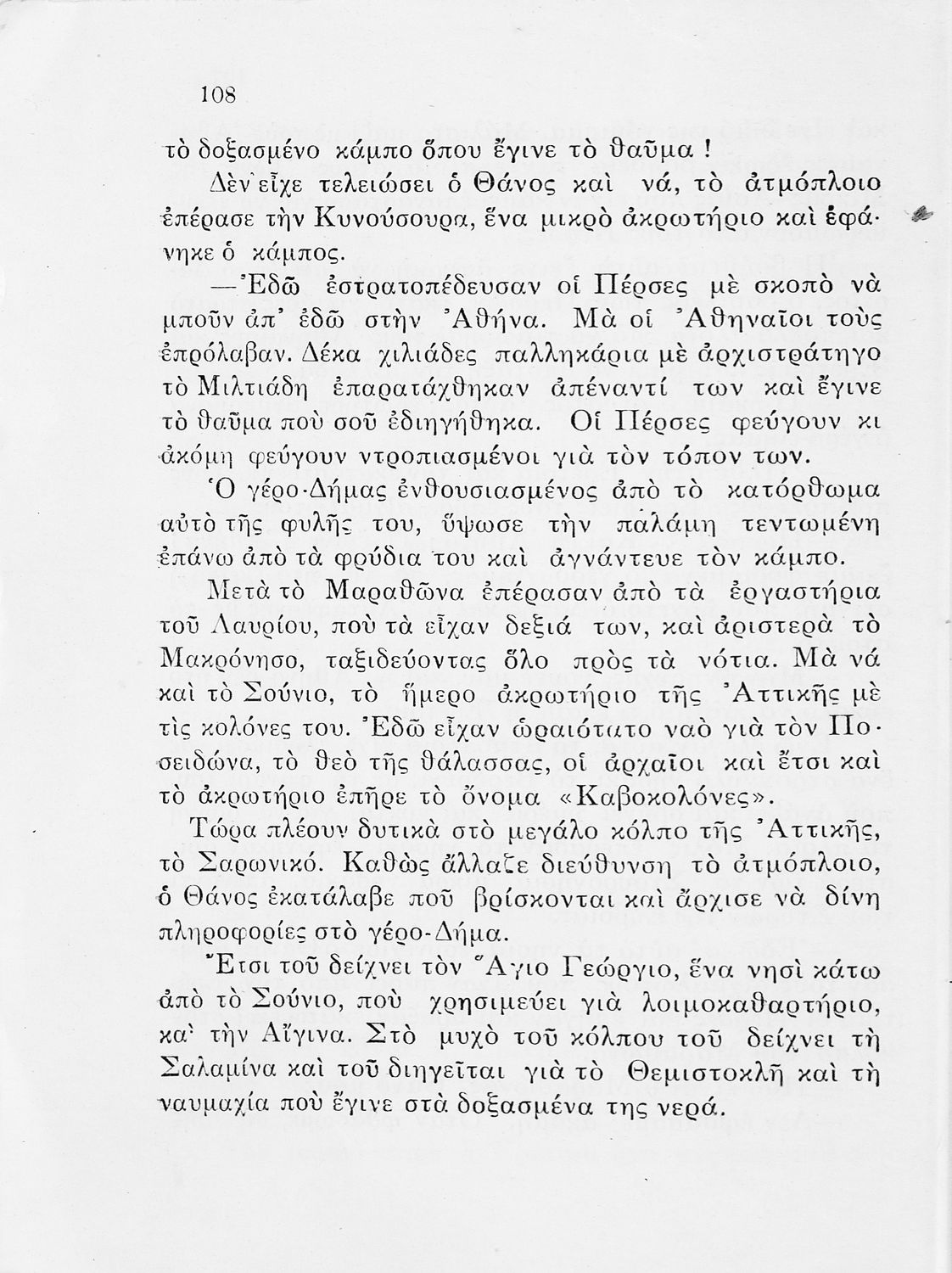 Αναγνωστικό Δ΄ Δημοτικού που περιέχει πεζά και ποιήματα με περιεχόμενο διδακτικό και ηθικοπλαστικό εμπνευσμένα από την ελληνική ιστορία και μυθολογία, και την αγροτική και κοινωνική ζωή.