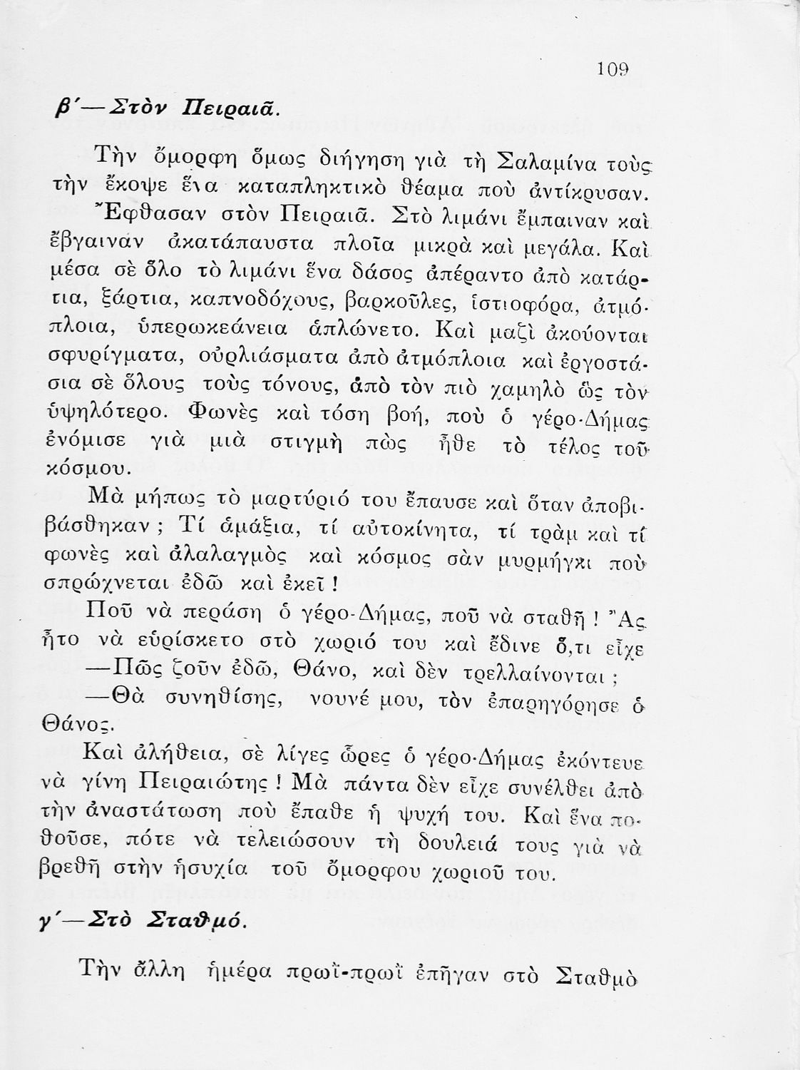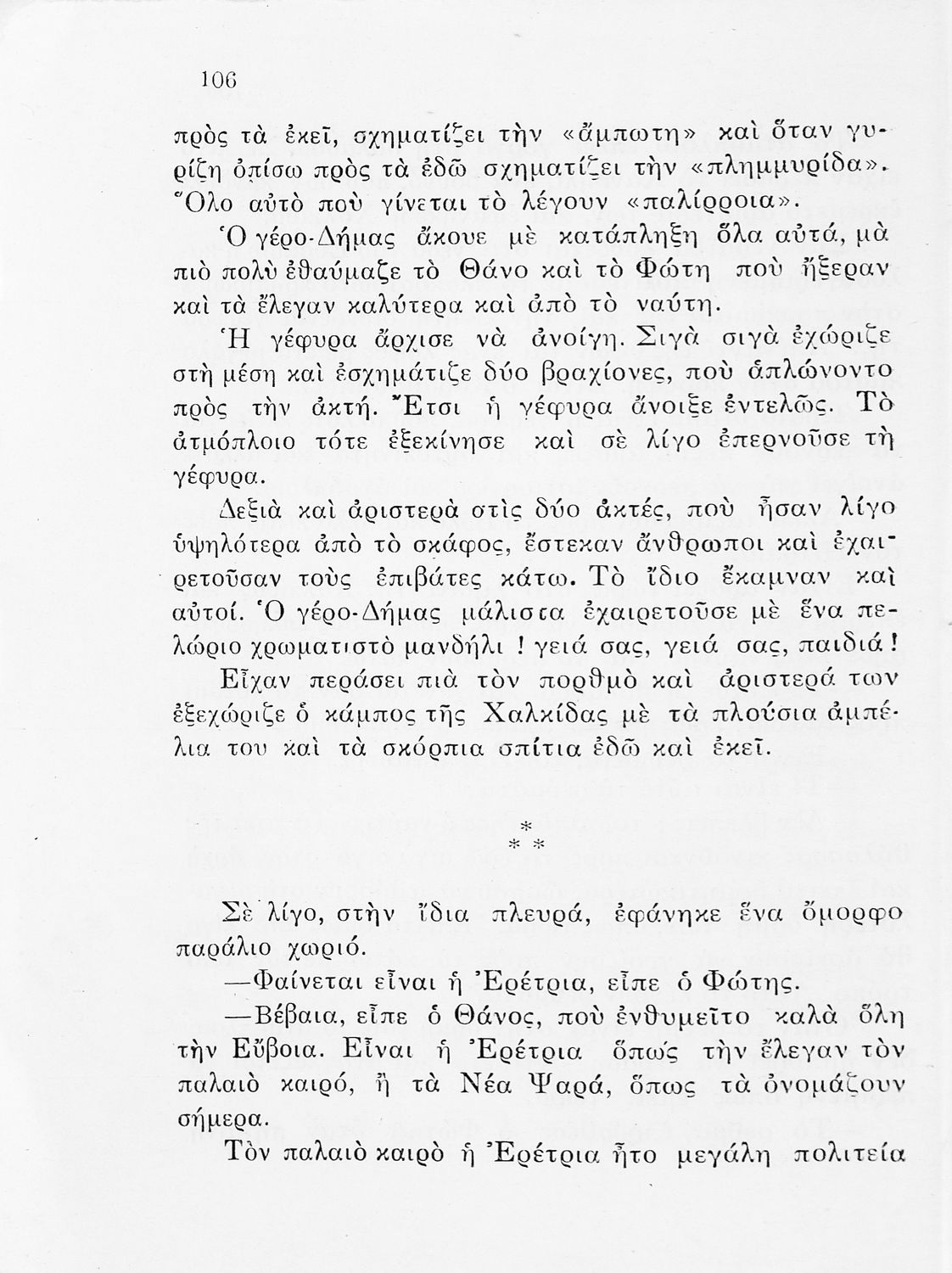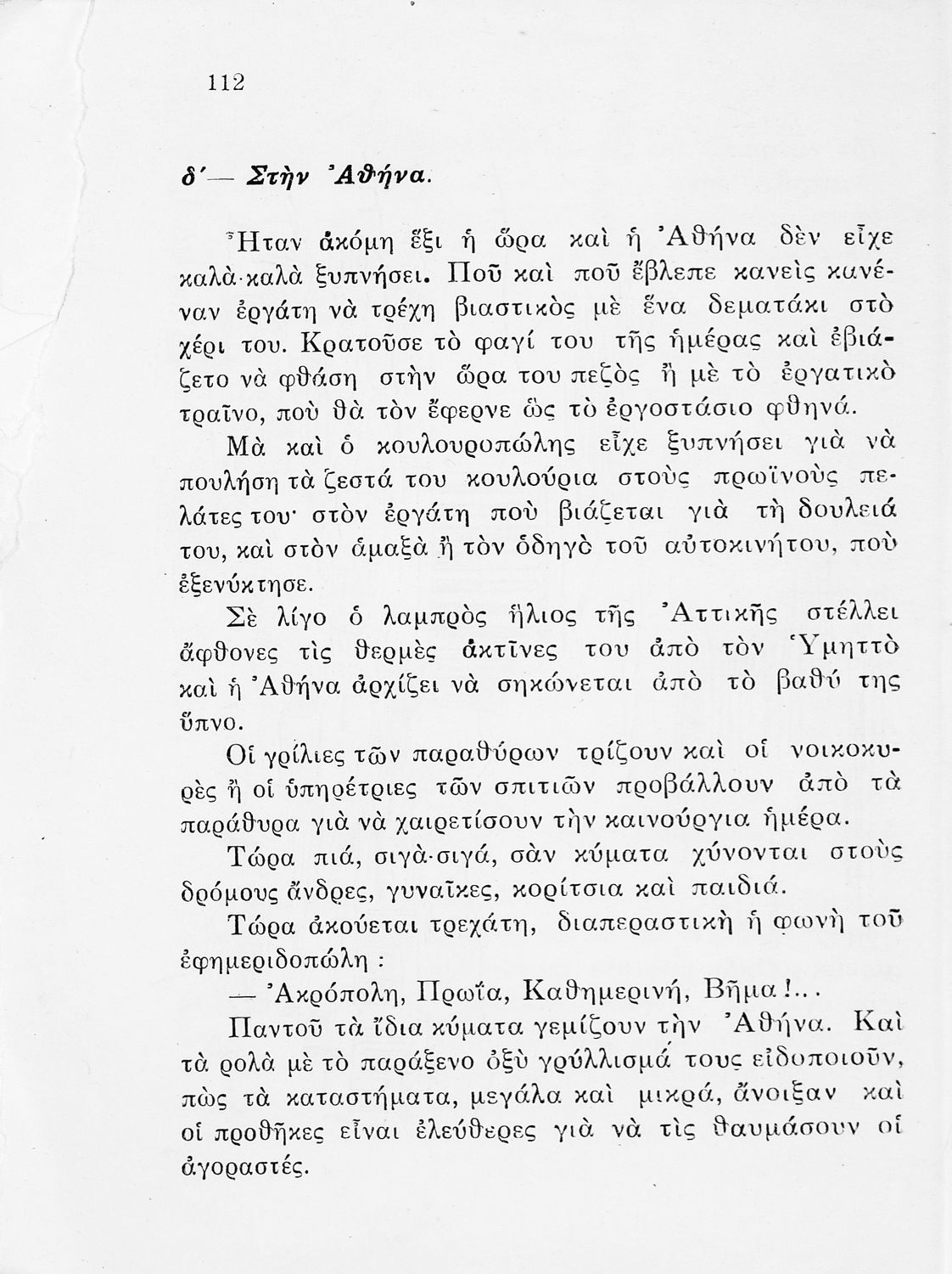 Αναγνωστικό Δ΄ Δημοτικού που περιέχει πεζά και ποιήματα με περιεχόμενο διδακτικό και ηθικοπλαστικό εμπνευσμένα από την ελληνική ιστορία και μυθολογία, και την αγροτική και κοινωνική ζωή.
