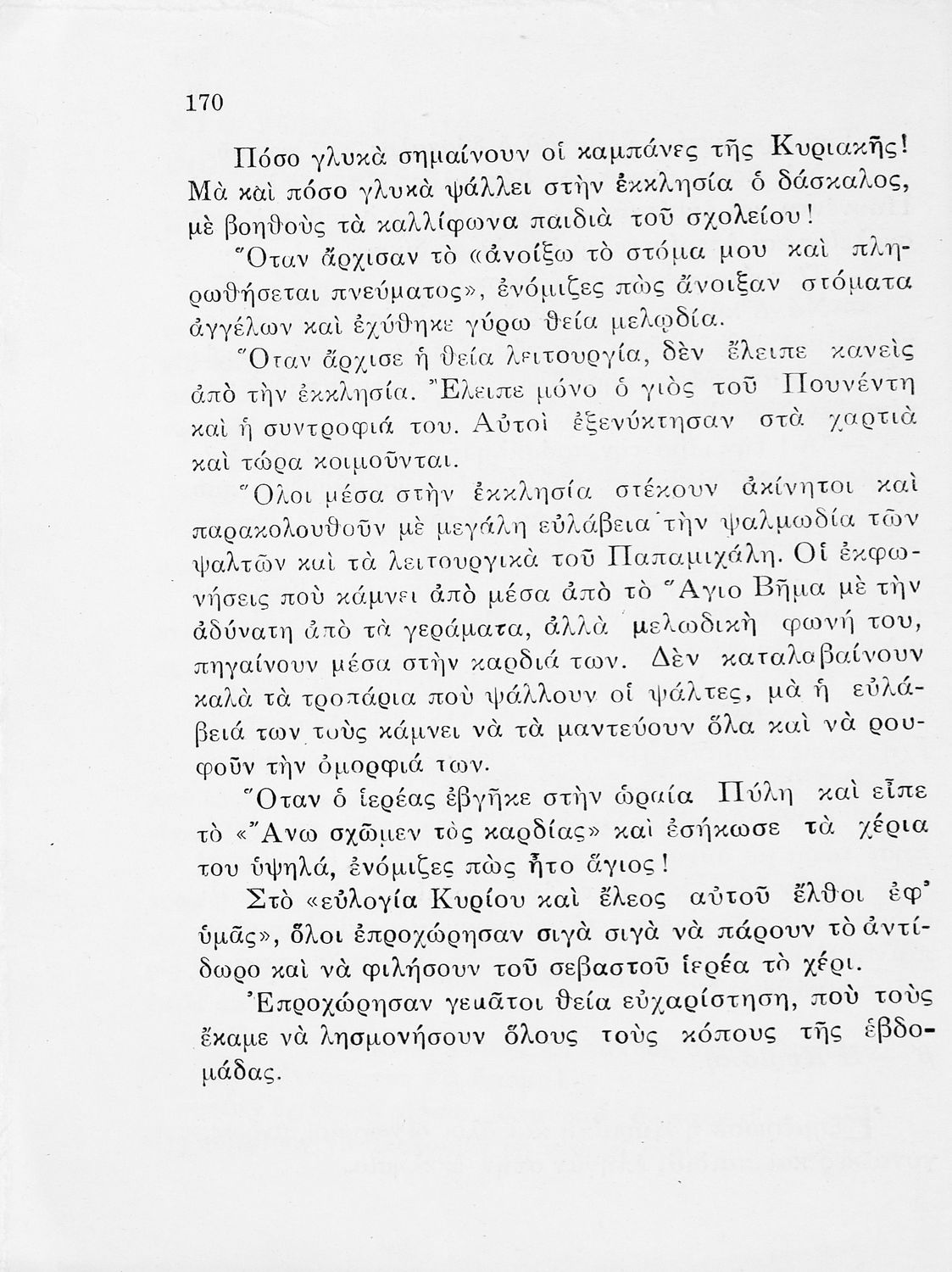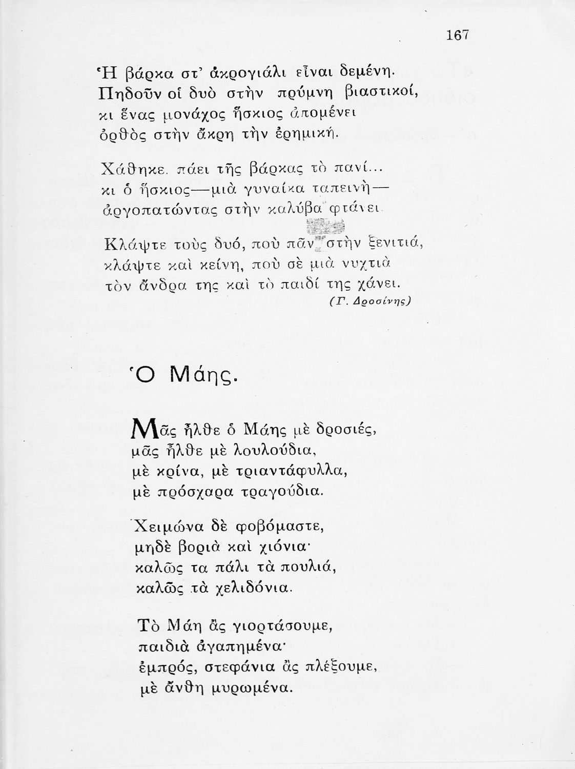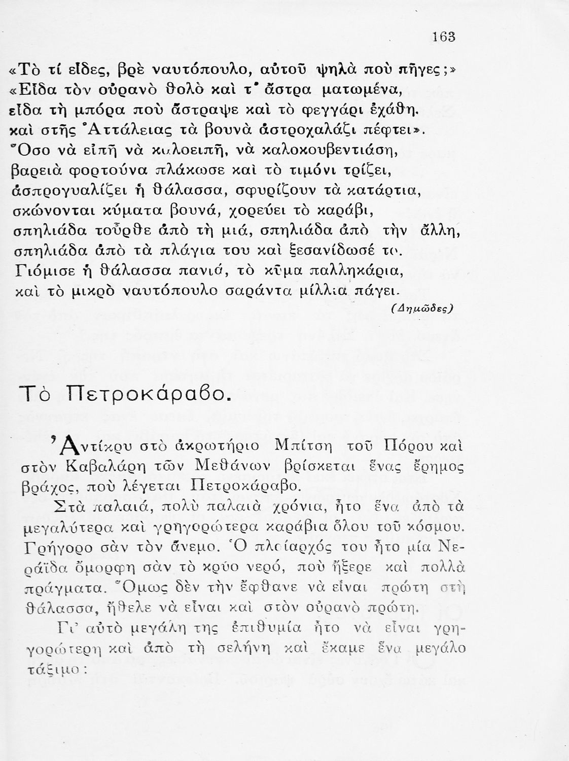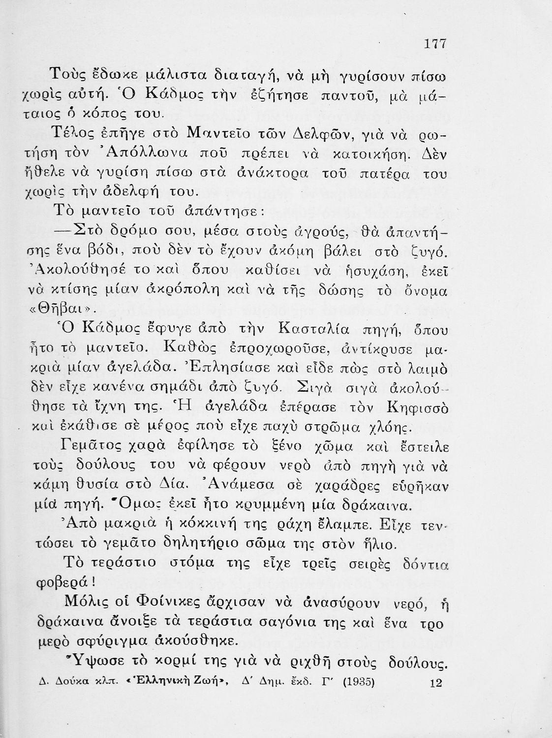 Αναγνωστικό Δ΄ Δημοτικού που περιέχει πεζά και ποιήματα με περιεχόμενο διδακτικό και ηθικοπλαστικό εμπνευσμένα από την ελληνική ιστορία και μυθολογία, και την αγροτική και κοινωνική ζωή.