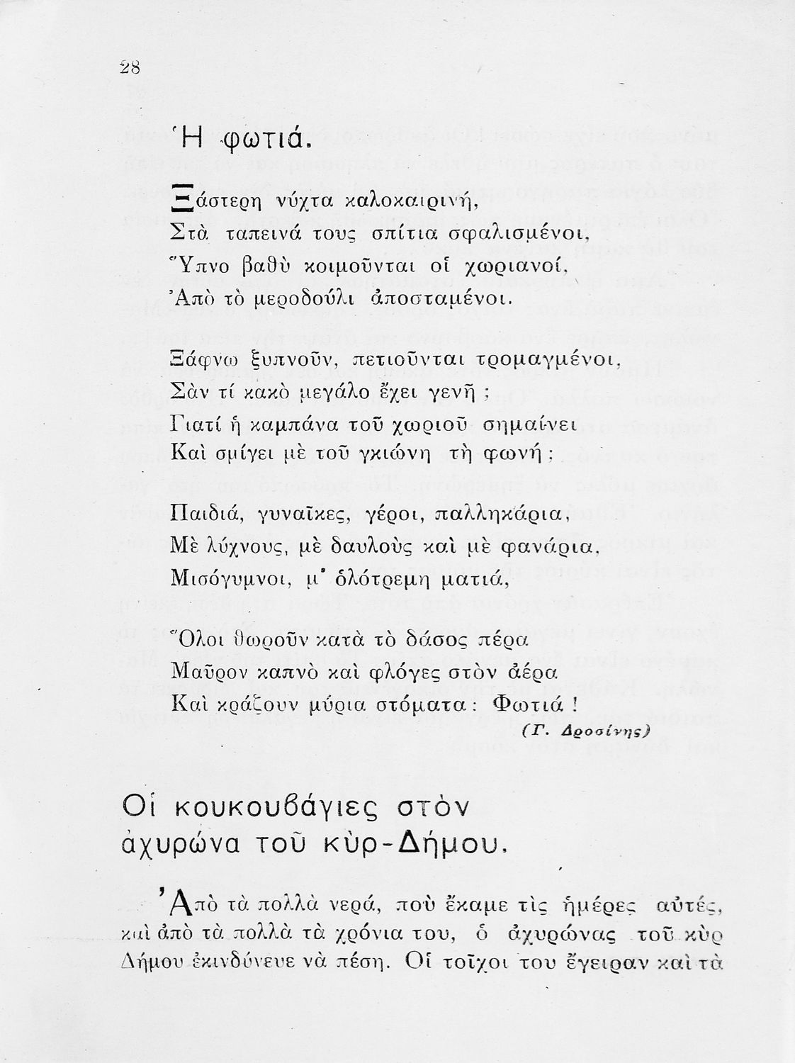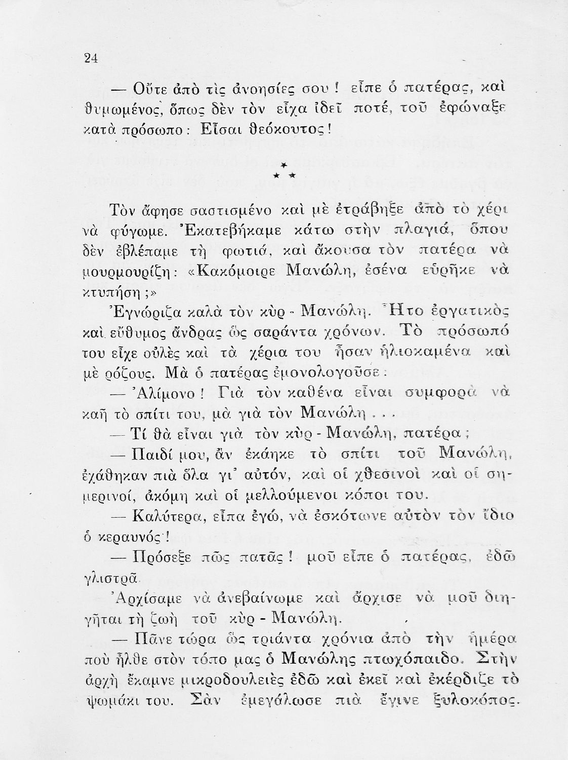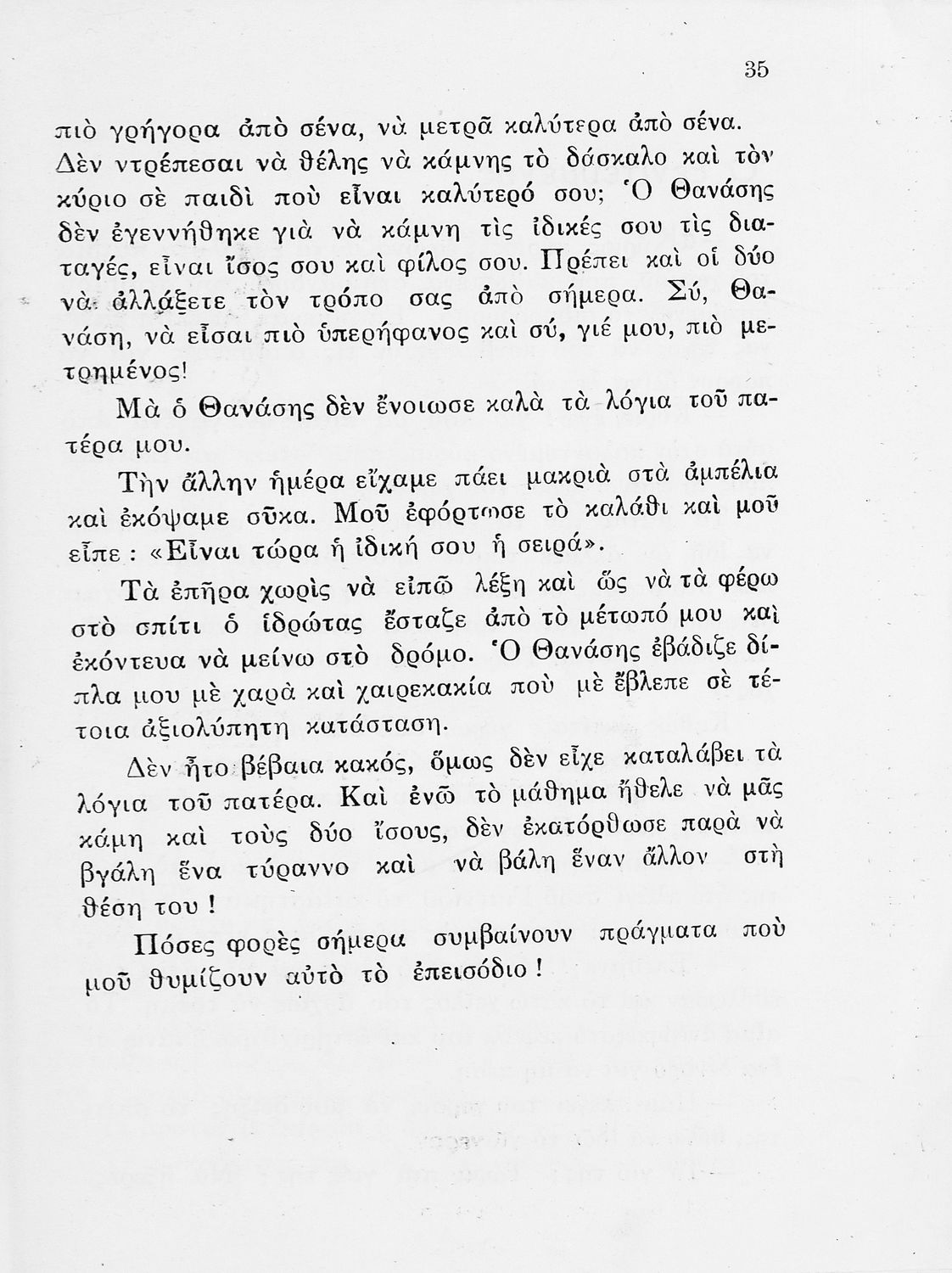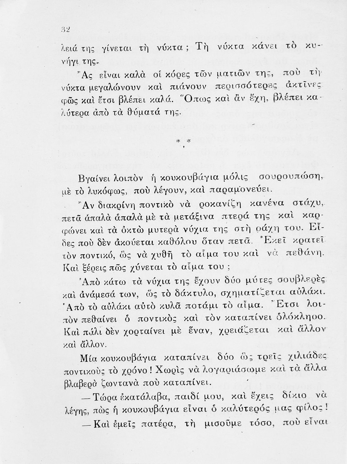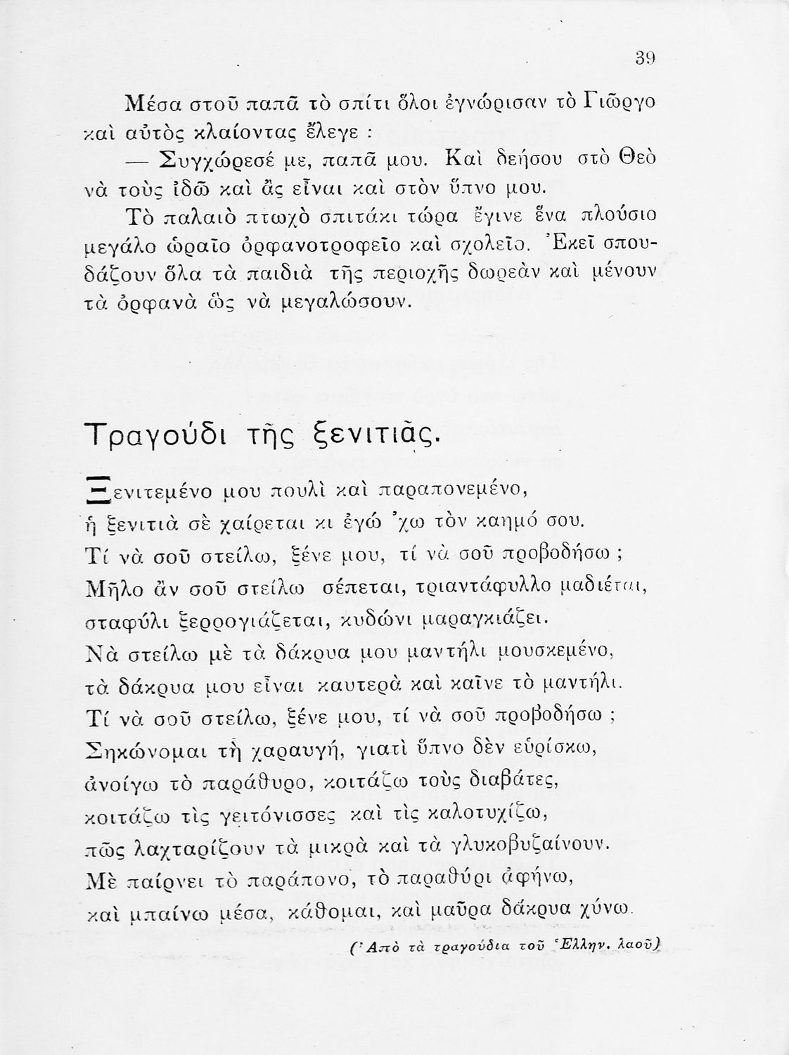 Αναγνωστικό Δ΄ Δημοτικού που περιέχει πεζά και ποιήματα με περιεχόμενο διδακτικό και ηθικοπλαστικό εμπνευσμένα από την ελληνική ιστορία και μυθολογία, και την αγροτική και κοινωνική ζωή.
