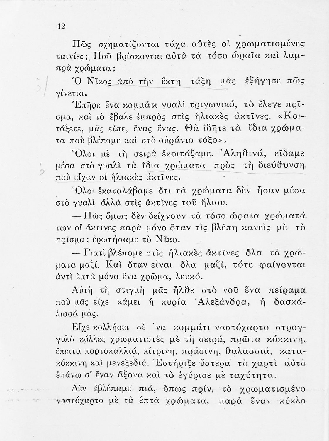 Αναγνωστικό Δ΄ Δημοτικού που περιλαμβάνει θέματα από την θρησκευτική, οικογενειακή και σχολική ζωή του παιδιού, την ελληνική μυθολογία και ιστορία και τη ζωή των ζώων.