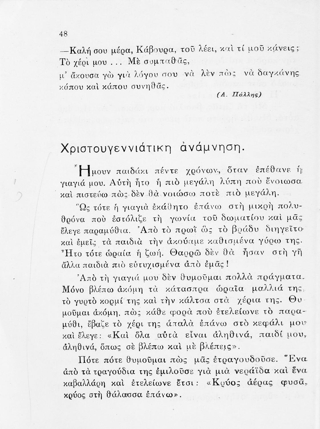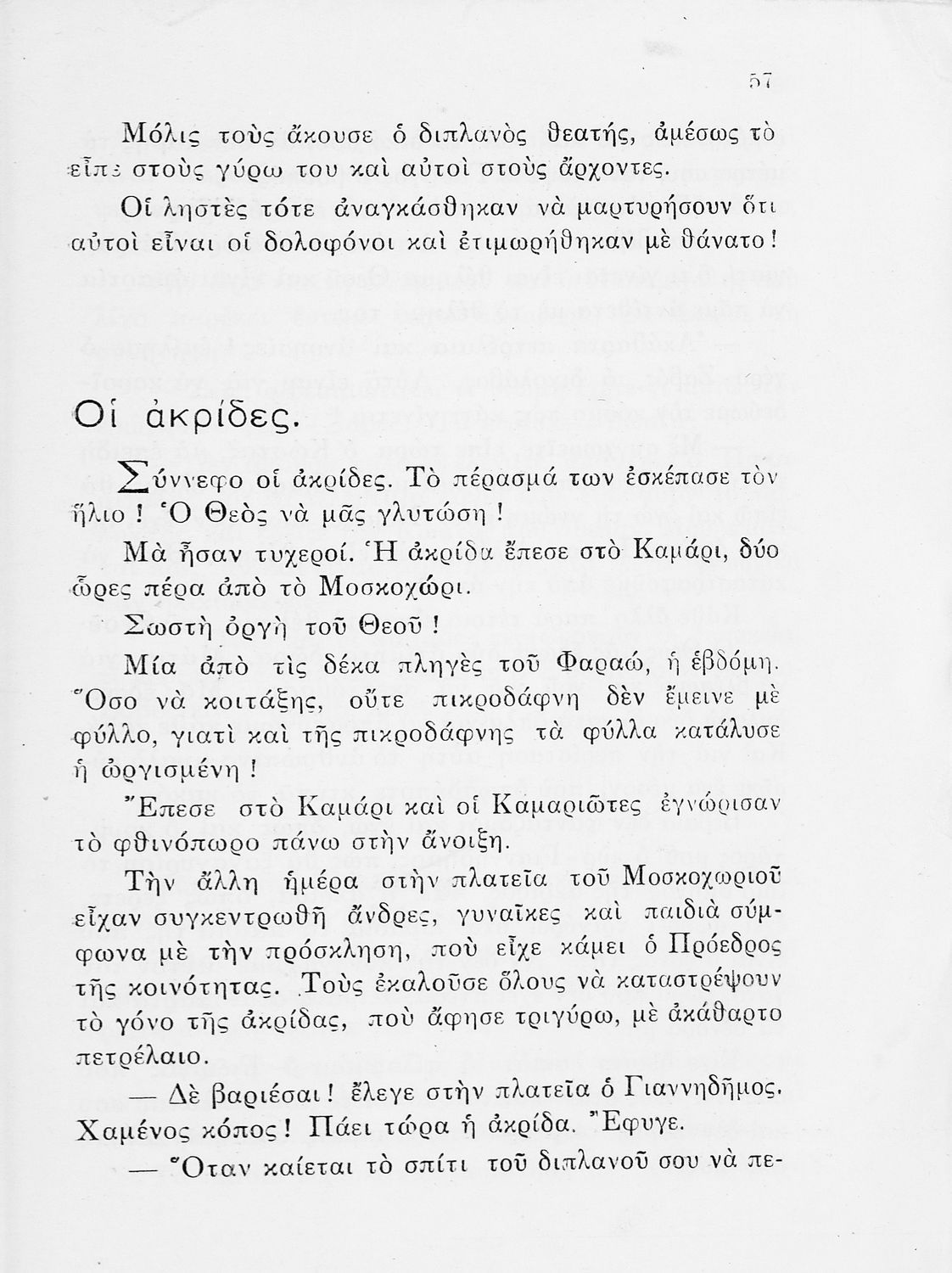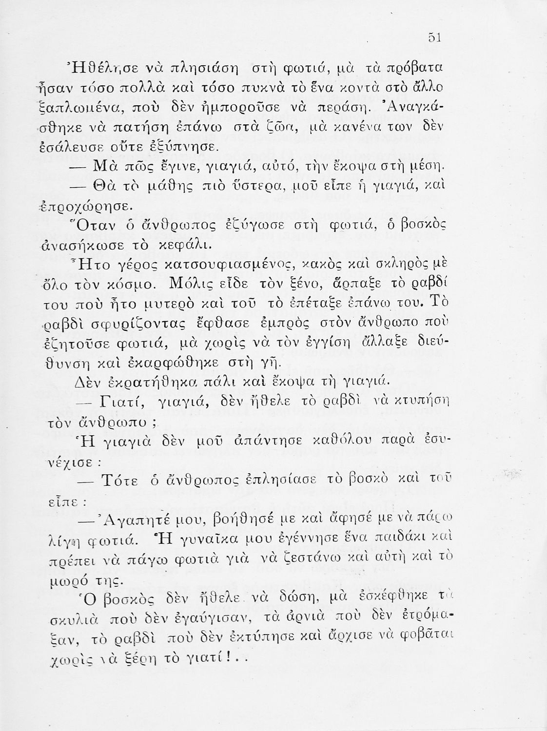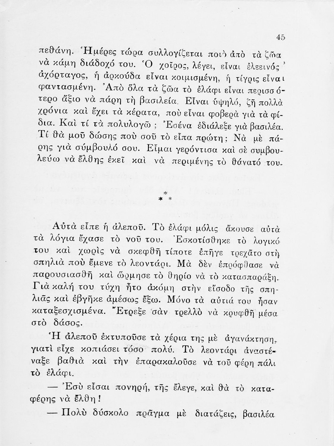 Αναγνωστικό Δ΄ Δημοτικού που περιέχει πεζά και ποιήματα με περιεχόμενο διδακτικό και ηθικοπλαστικό εμπνευσμένα από την ελληνική ιστορία και μυθολογία, και την αγροτική και κοινωνική ζωή.