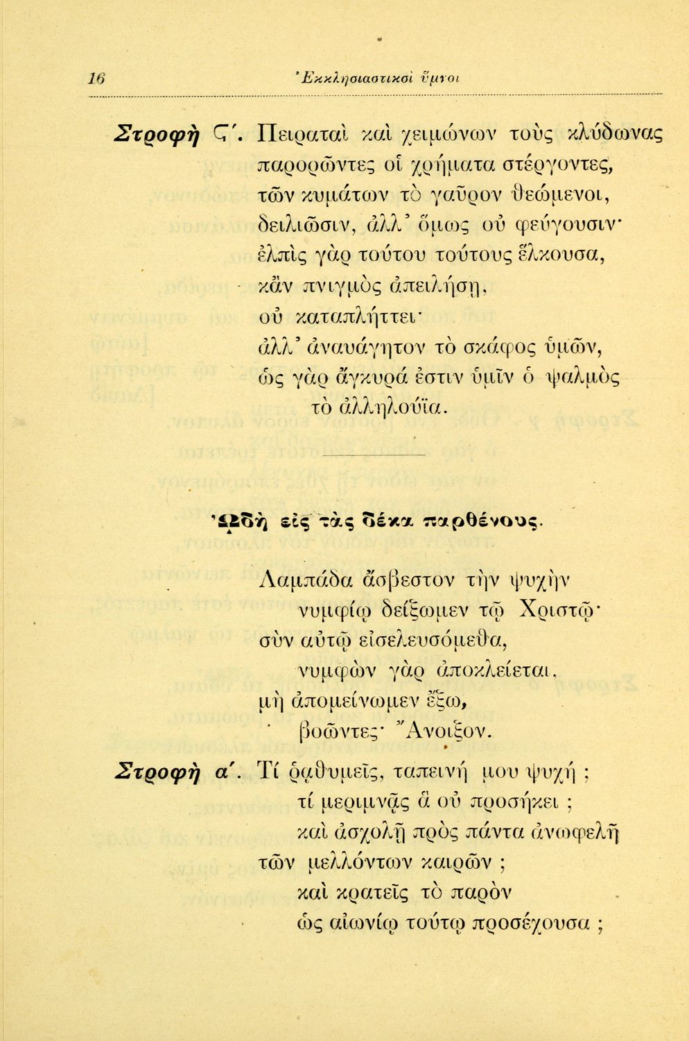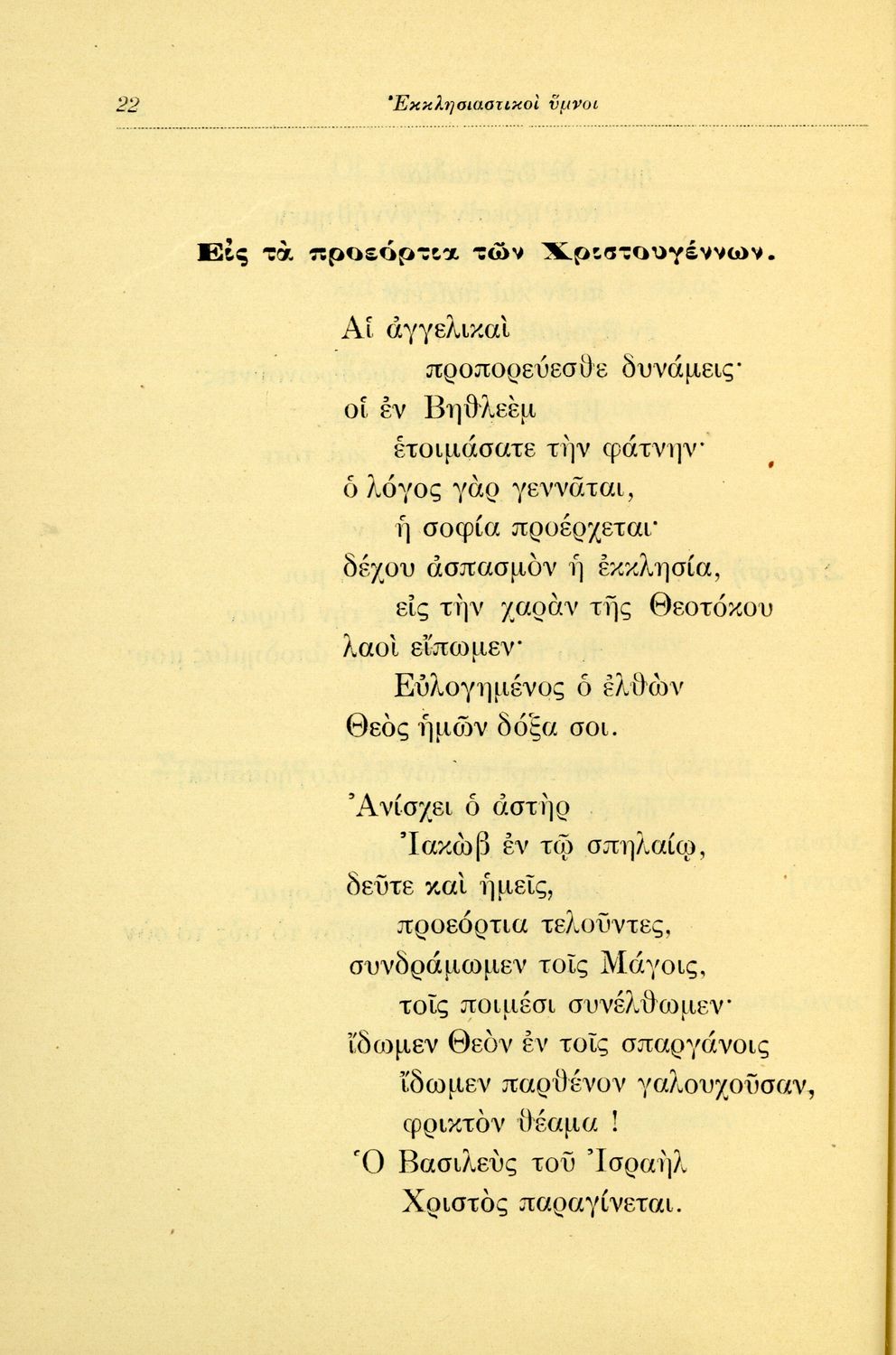 Εκλογαί ιερών ύμνων της ελληνικής εκκλησίας κατά το επίσημον πρόγραμμα των εν τοις Ελληνικοίς Σχολείοις και Γυμνασίοις του κράτους διδακτέων μαθημάτων από του σχολικού έτους 1914 - 1915