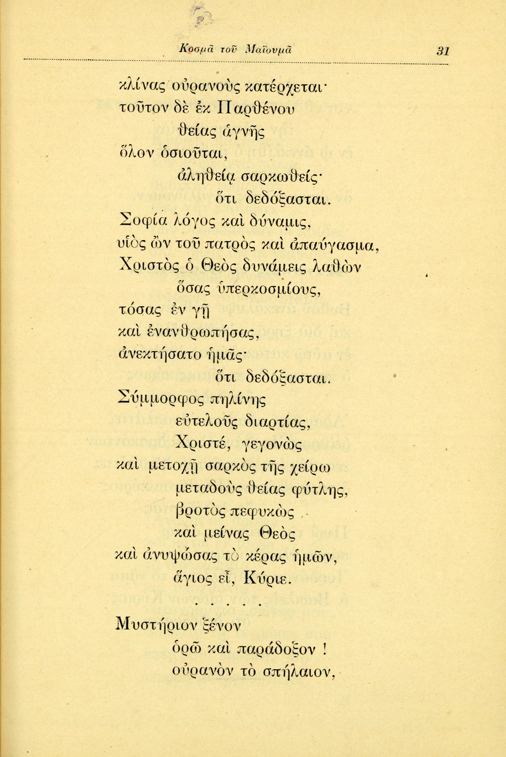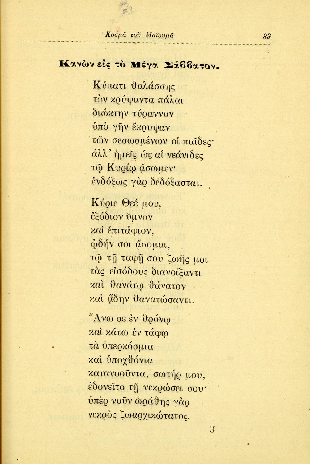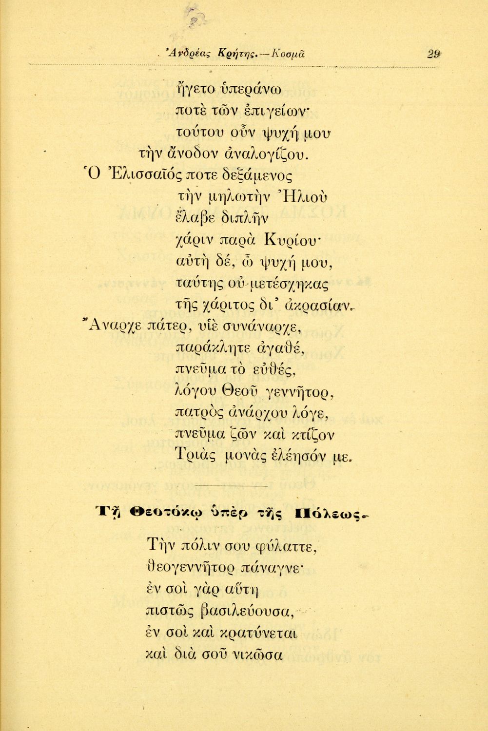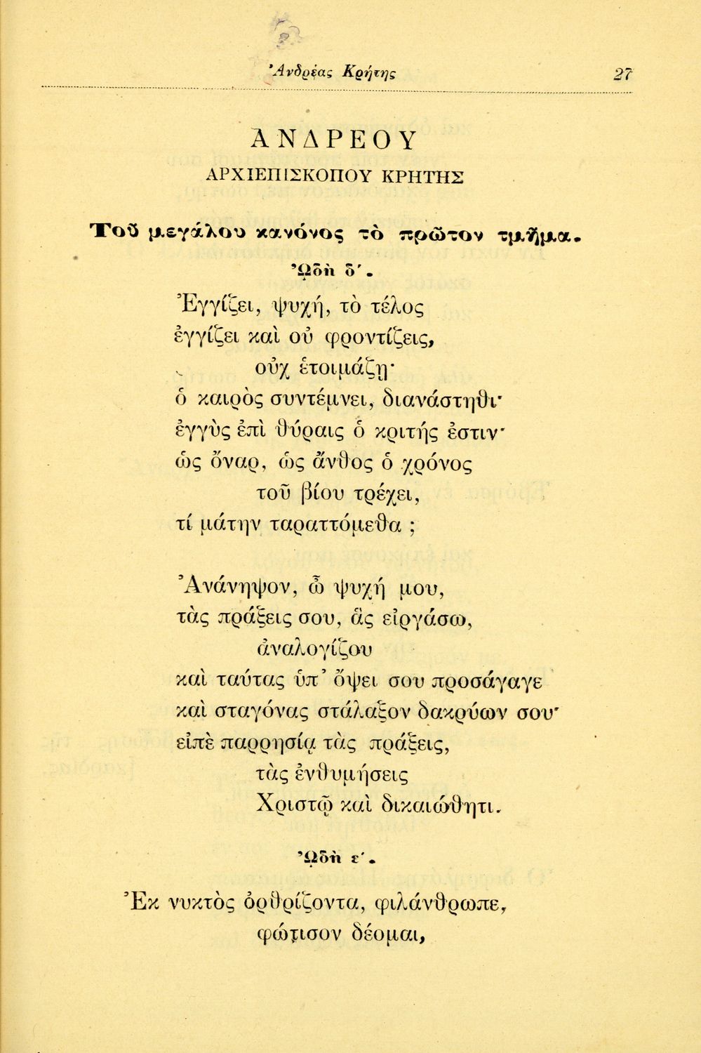 LDR 01437 2200193 4500 035 ## _a20-03491 040 ## _aΚΕΝΕΚ - Εταιρεία Σπουδών Νεοελληνικού Πολιτισμού και Παιδείας 041 ## _ael 100 ## _aΓεώργιος Σωτηριάδης 110 ## _a3491 245 0# _aΕκλογαί ιερών ύμνων της ελληνικής εκκλησίας κατά το επίσημον πρόγραμμα των εν τοις Ελληνικοίς Σχολείοις και Γυμνασίοις του κράτους διδακτέων μαθημάτων από του σχολικού έτους 1914 - 1915 260 ## _aΑθήνα _bΙωάννης Ν. Σιδέρης _c1915 300 ## _a64 _c18 520 ## _aΣχολικό εγχειρίδιο Θρησκευτικών για τα Ελληνικά Σχολεία και τη Γ΄ Γυμνασίου που περιλαμβάνει αποσπάσματα ύμνων και ψαλμωδιών της Ορθόδοξης Εκκλησίας, ερμηνευτικές σημειώσεις και πραγματολογικά και γλωσσικά σχόλια. 521 ## _aΕλληνικό Σχολείο / Γ' Γυμνασίου 522 ## _aΕλλάδα 546 ## _aΚαθαρεύουσα 563 ## _aΜαλακό Εξώφυλλο 650 #4 _aΑνατόλιος _aΚασίας _aΠατριάρχης Σέργιος _aΡωμανός Μελωδός