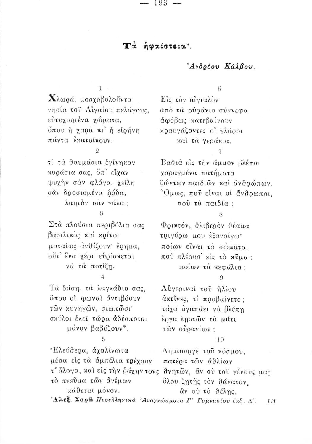 Σχετιζόμενοι όροι:  Κρυστάλλης, Παλαμάς, Σολωμός, Δροσίνης