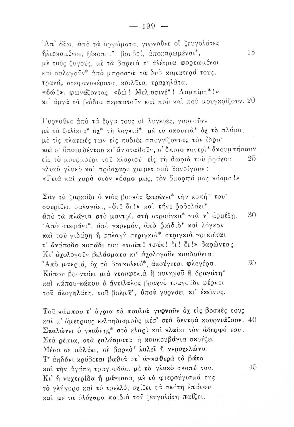 Σχολικό εγχειρίδιο Νέων Ελληνικών Γ΄ Γυμνασίου που περιλαμβάνει ποιήματα και πεζά Ελλήνων συγγραφέων και δημοτικά τραγούδια εμπνευσμένα από την ελληνική φύση και τη ζωή στην ύπαιθρο, την οικογενειακή και ...