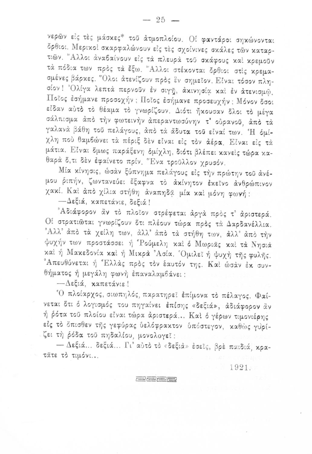 Σχολικό εγχειρίδιο Νέων Ελληνικών Γ΄ Εξαταξίου Γυμνασίου που περιλαμβάνει ποιήματα και πεζά Ελλήνων συγγραφέων και δημοτικά τραγούδια εμπνευσμένα από την σύγχρονη ελληνική ιστορία, την ελληνική φύση και τη ζωή στην ύπαιθρο, την οικογενειακή και κοινωνική ζωή και τη θρησκευτική παράδοση. Περιέχει και παράρτημα με βιογραφίες των συγγραφέων και λεξιλόγιο.
