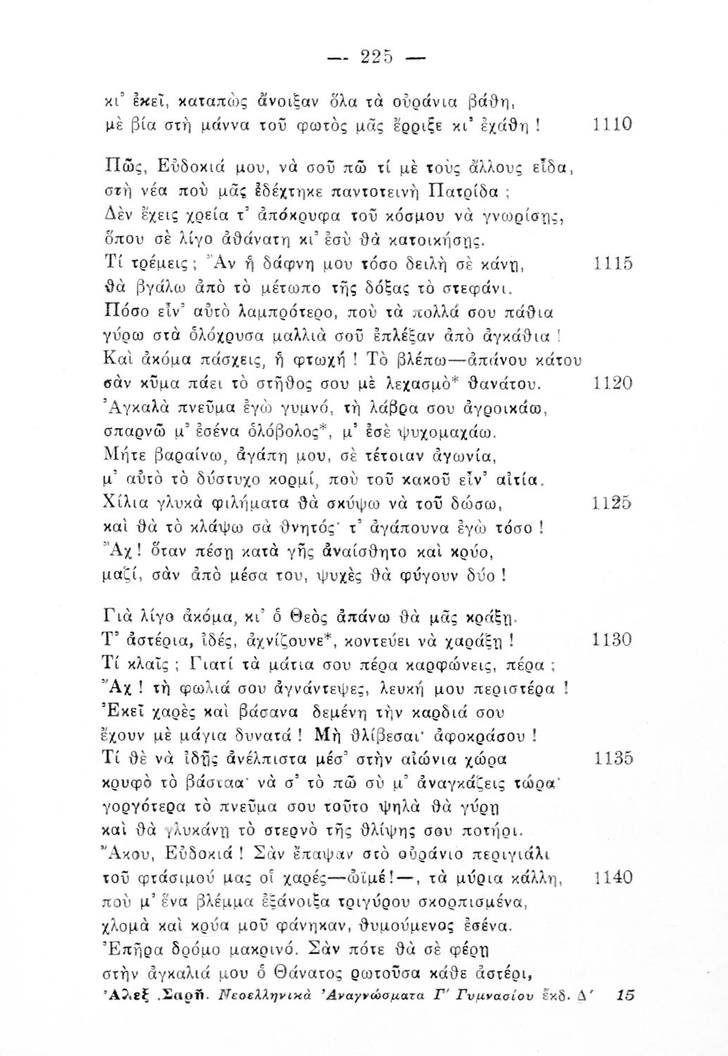 Σχολικό εγχειρίδιο Νέων Ελληνικών Γ΄ Εξαταξίου Γυμνασίου που περιλαμβάνει ποιήματα και πεζά Ελλήνων συγγραφέων και δημοτικά τραγούδια εμπνευσμένα από την σύγχρονη ελληνική ιστορία, την ελληνική φύση και τη ζωή στην ύπαιθρο, την οικογενειακή και κοινωνική ζωή και τη θρησκευτική παράδοση. Περιέχει και παράρτημα με βιογραφίες των συγγραφέων και λεξιλόγιο.