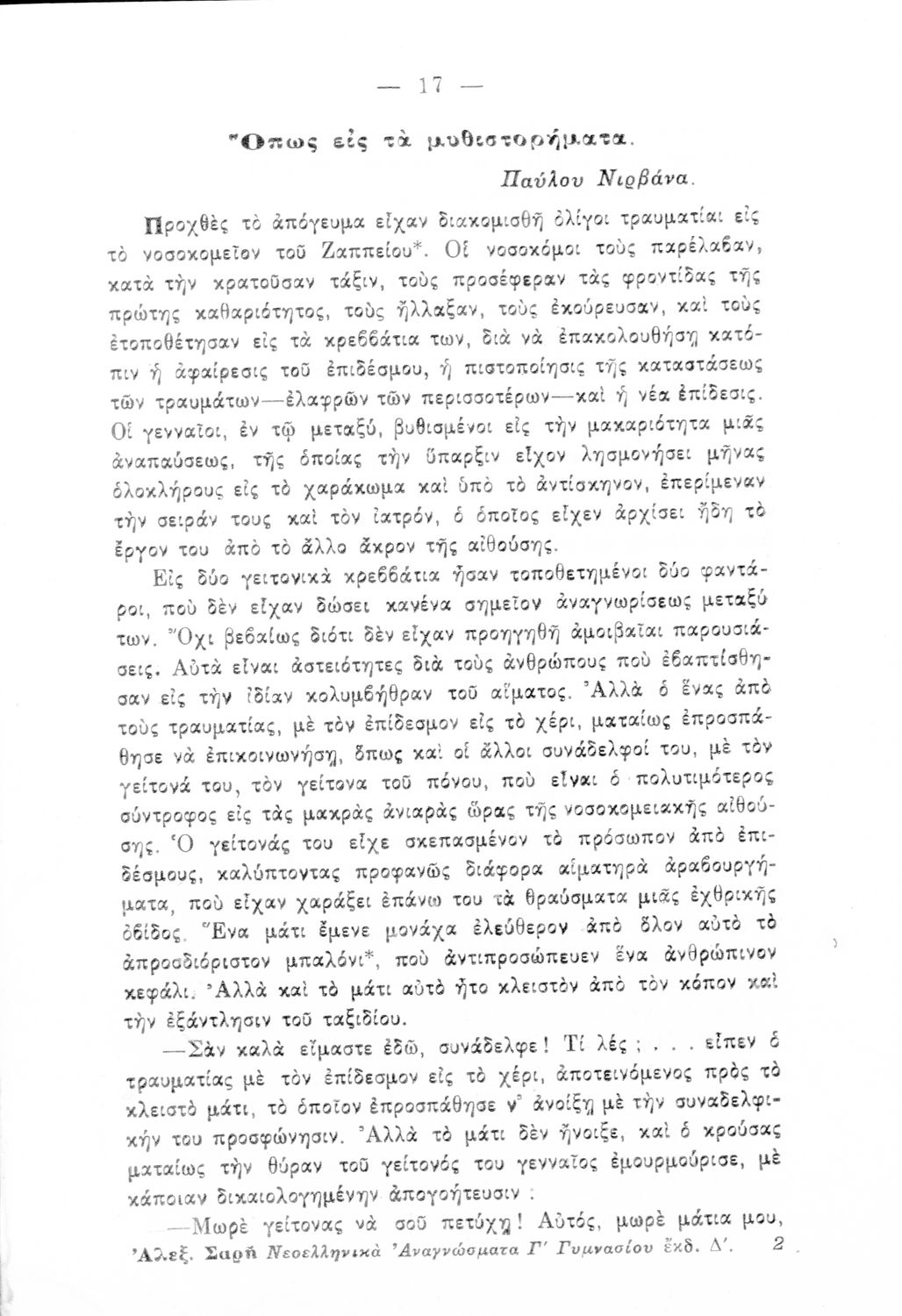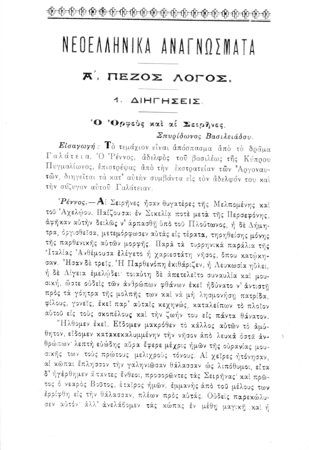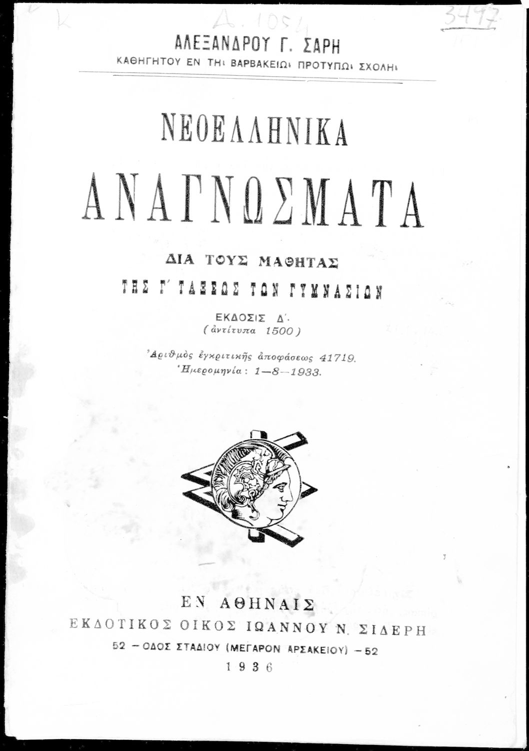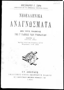 Τίτλος: Νεοελληνικά αναγνώσματα διά τους μαθητάς της Γ΄ τάξεως των Γυμνασίων