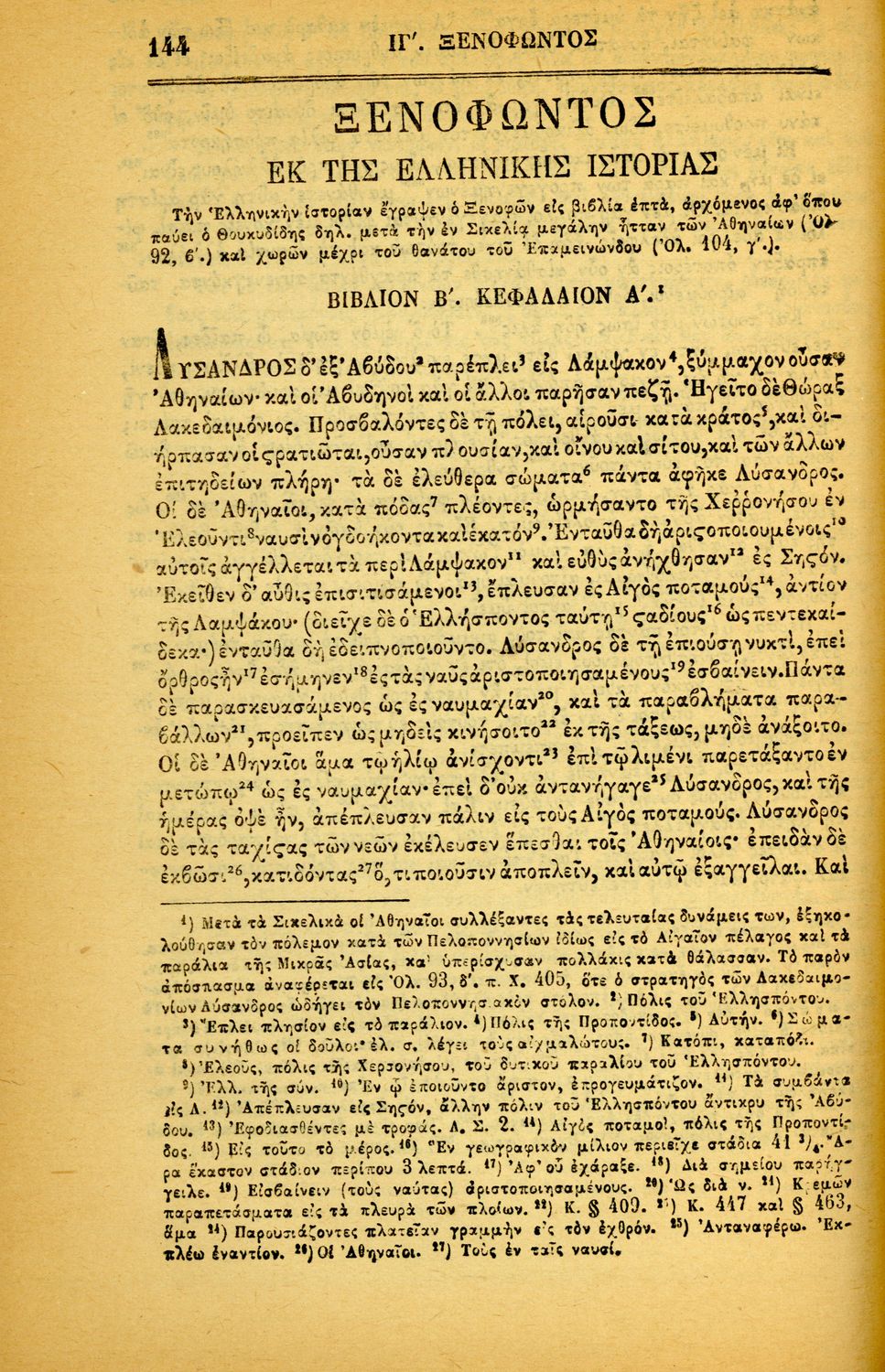 Μαθητικό βοήθημα Αρχαίων Ελληνικών για τα Ελληνικά Σχολεία και Παρθεναγωγεία που περιέχει αποσπάσματα από τα έργα του Ξενοφώντα Ελληνικά (βιβλία Α΄ έως Δ΄ ) σημειώσεις και ερμηνευτικά σχόλια.