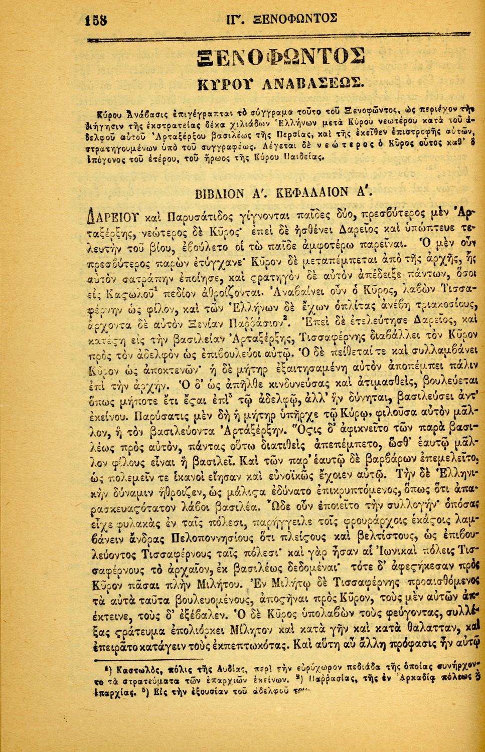 Σχολικό εγχειρίδιο Αρχαίων Ελληνικών για τα Ελληνικά Σχολεία και Παρθεναγωγεία που περιλαμβάνει αποσπάσματα από τα έργα του Ξενοφώντα Ελληνικά και Κύρου Παιδεία και λεξικολογικές παρατηρήσεις.