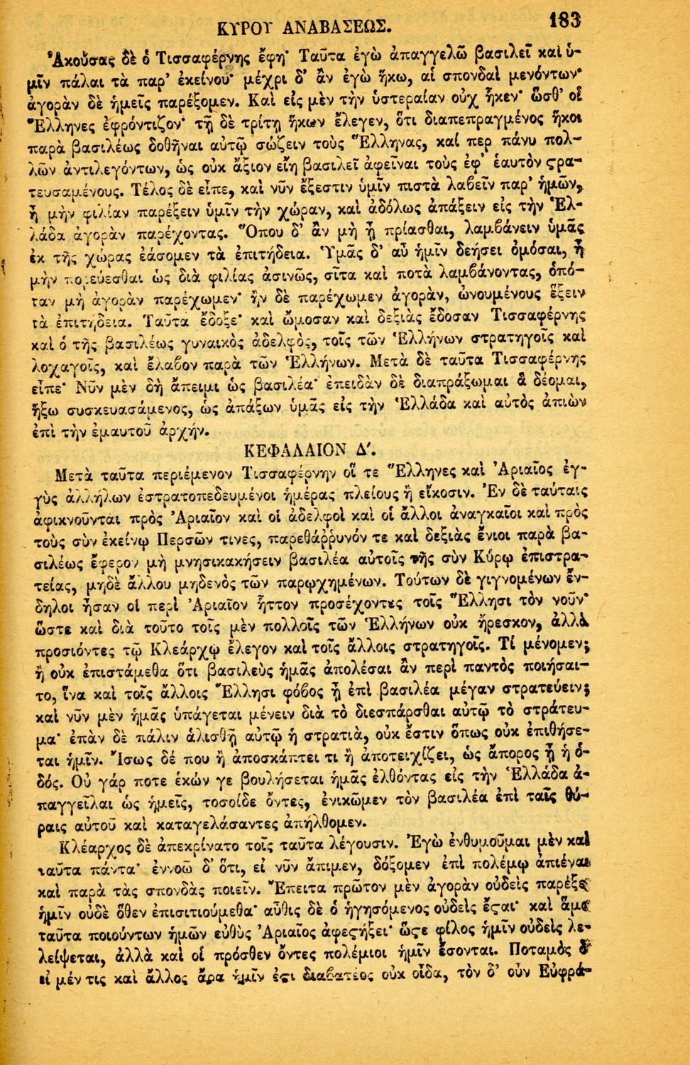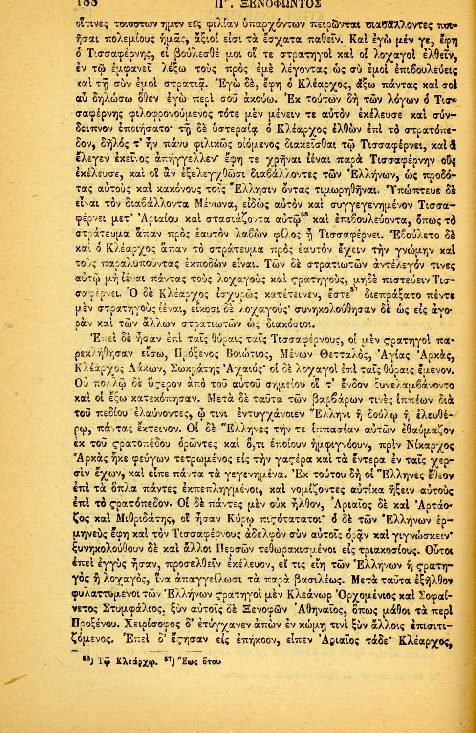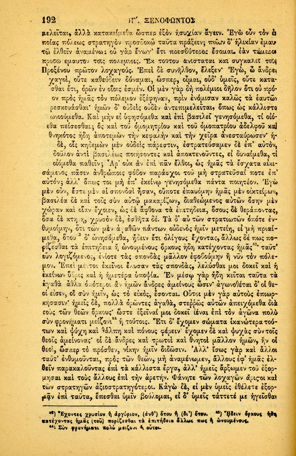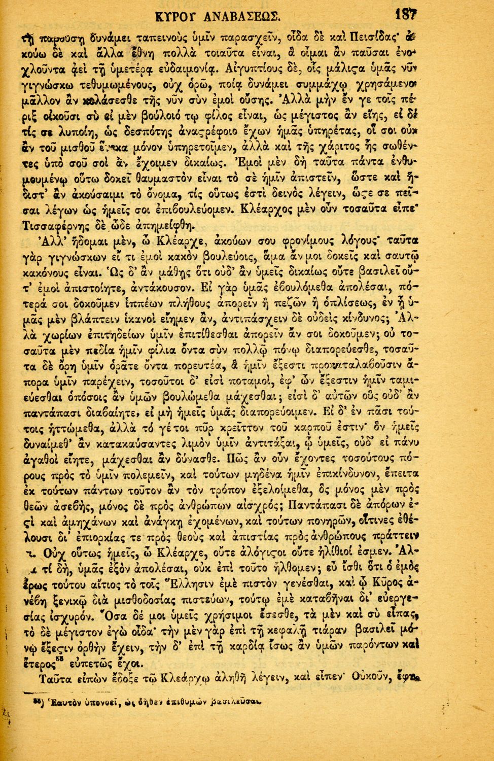 Σχολικό εγχειρίδιο Αρχαίων Ελληνικών για τα Ελληνικά Σχολεία και Παρθεναγωγεία που περιλαμβάνει αποσπάσματα από τα έργα του Ξενοφώντα Ελληνικά και Κύρου Παιδεία και λεξικολογικές παρατηρήσεις.