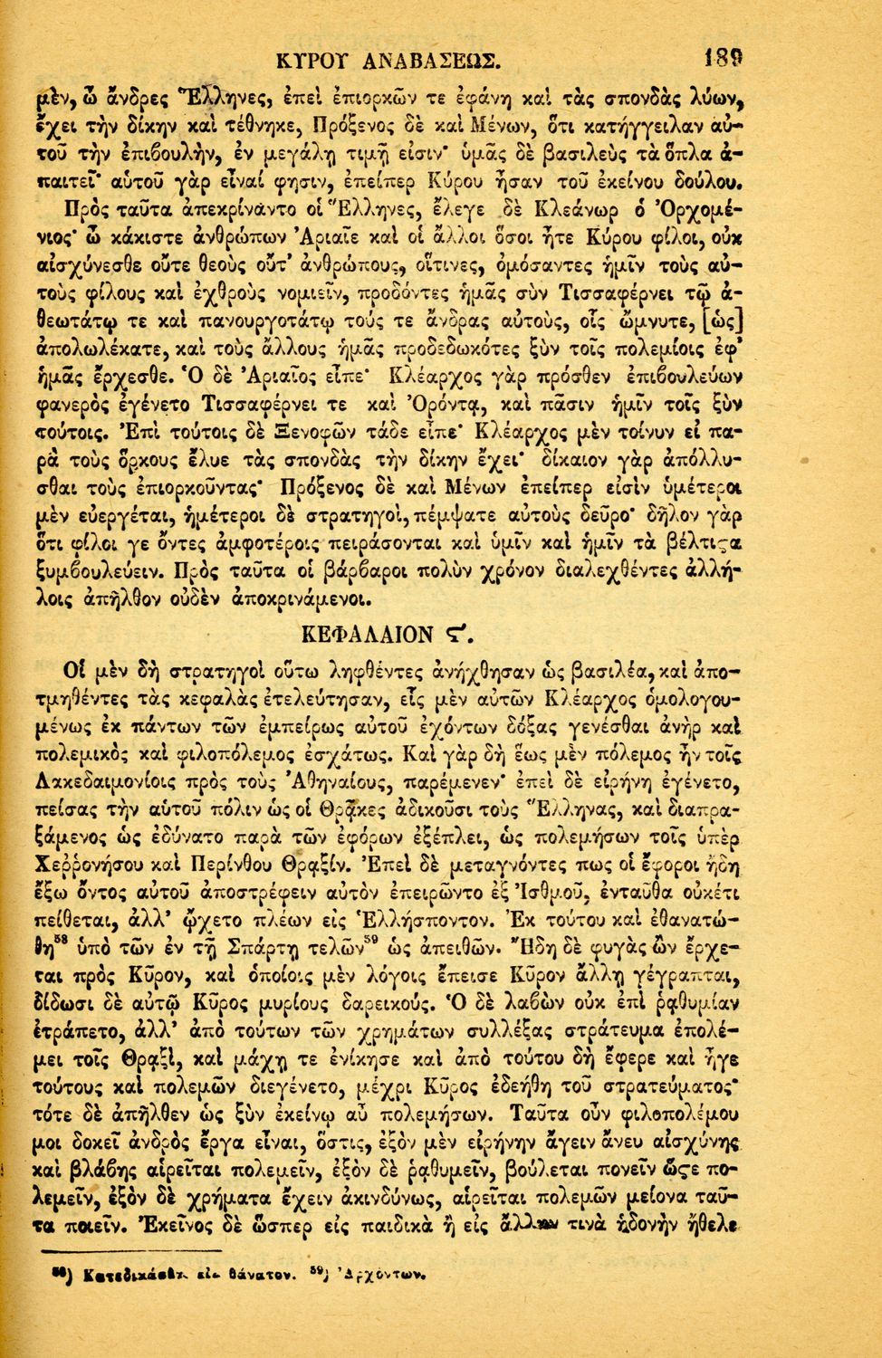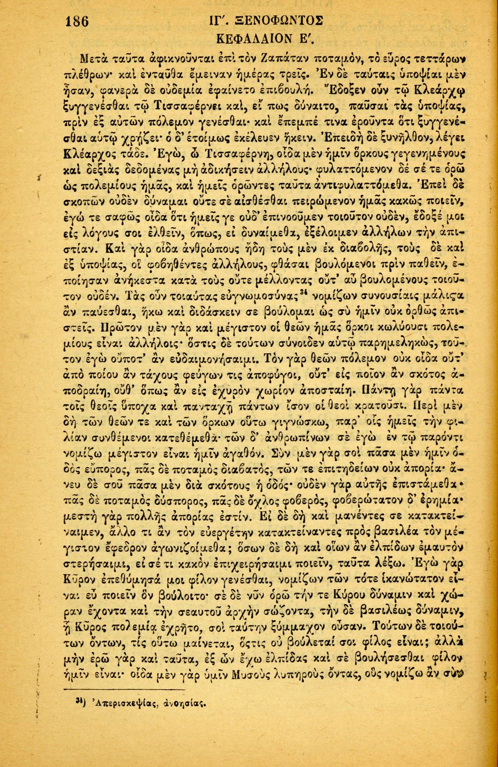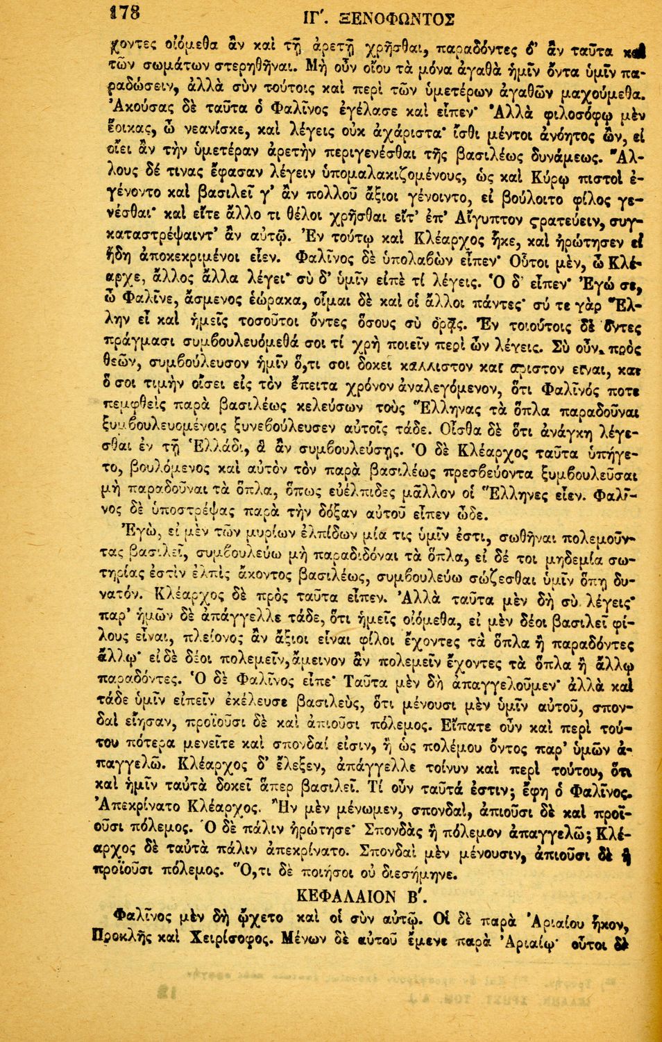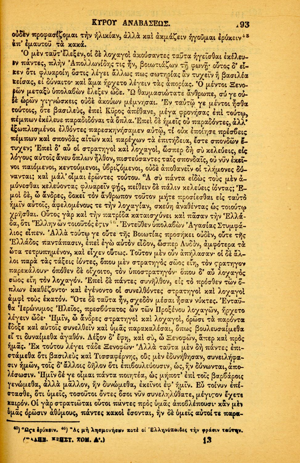 Σχολικό εγχειρίδιο Αρχαίων Ελληνικών για τα Ελληνικά Σχολεία και Παρθεναγωγεία που περιλαμβάνει αποσπάσματα από τα έργα του Ξενοφώντα Ελληνικά και Κύρου Παιδεία και λεξικολογικές παρατηρήσεις.