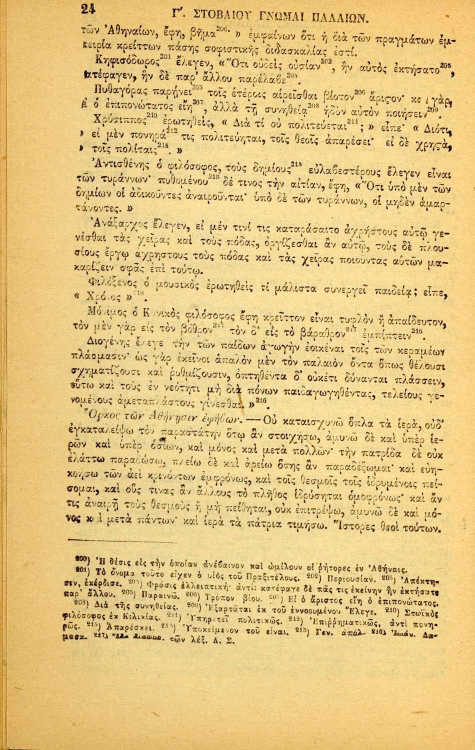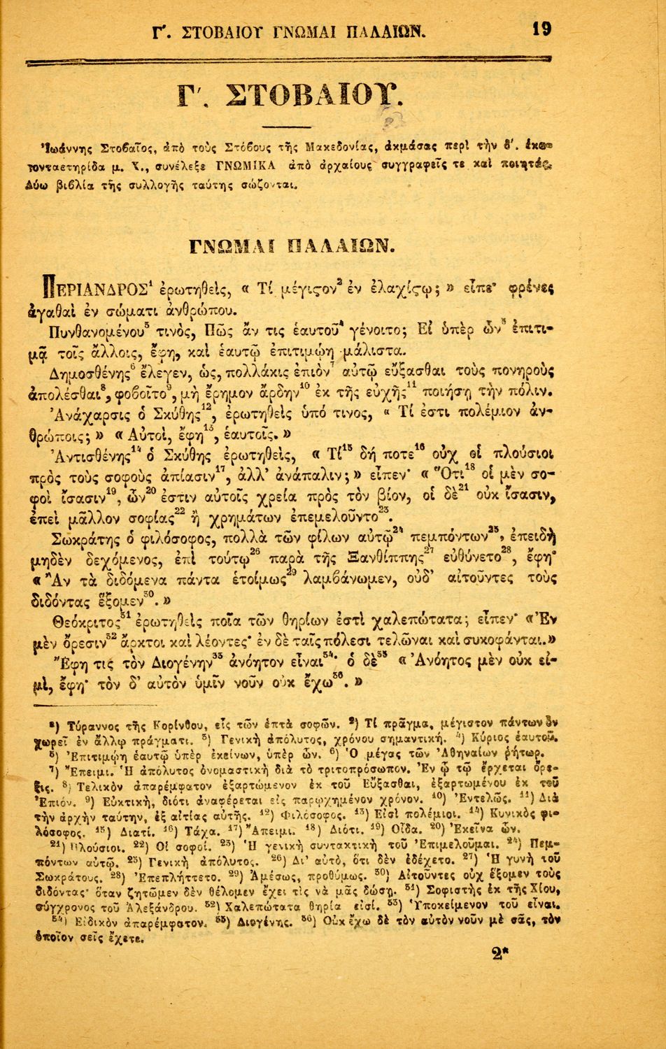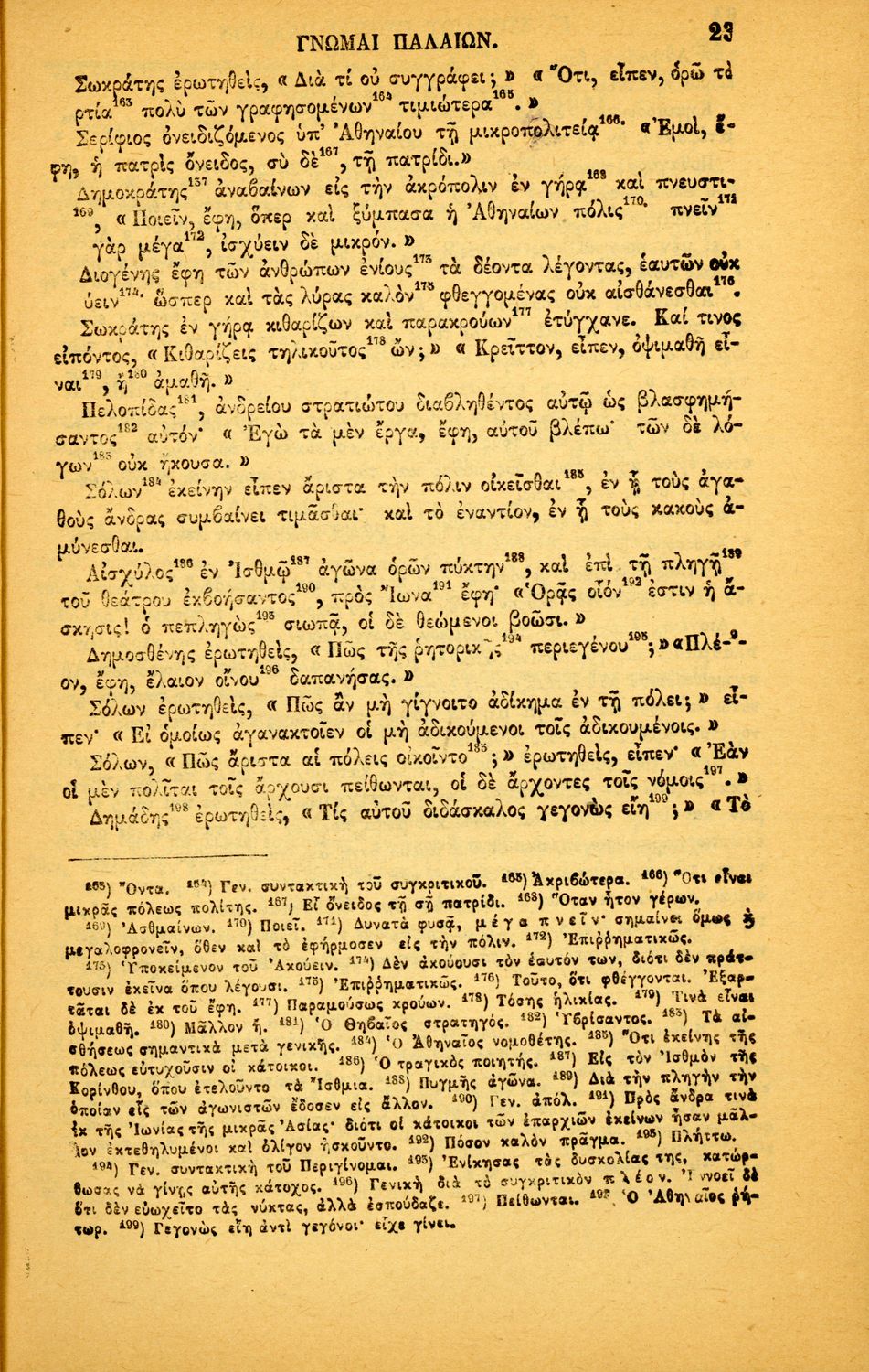 Σχολικό εγχειρίδιο Αρχαίων Ελληνικών για τα Ελληνικά Σχολεία και τα Γυμνάσια που περιλαμβάνει αποσπάσματα από έργα αρχαίων Ελλήνων συγγραφέων και ερμηνευτικές και πραγματολογικές σημειώσεις.