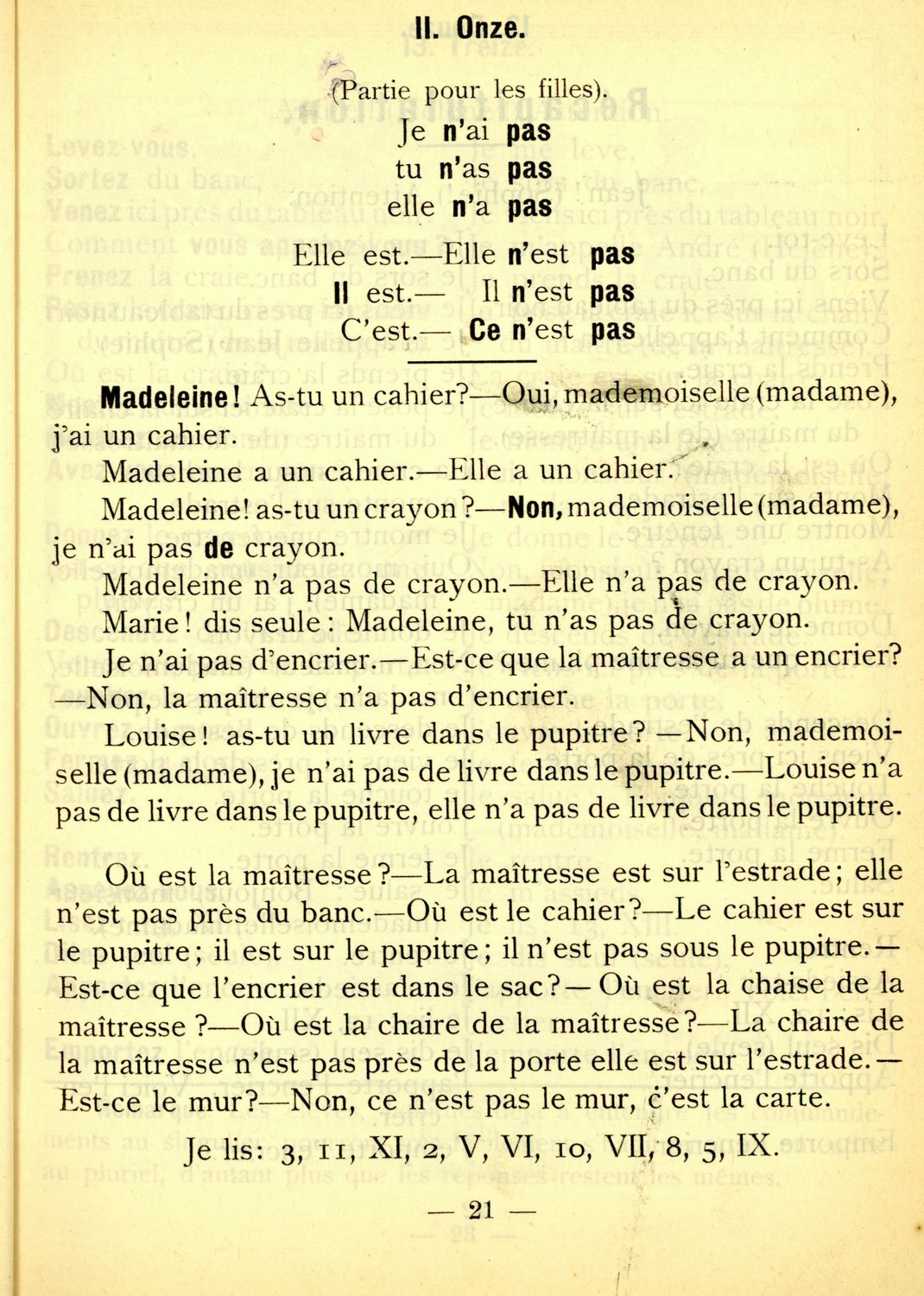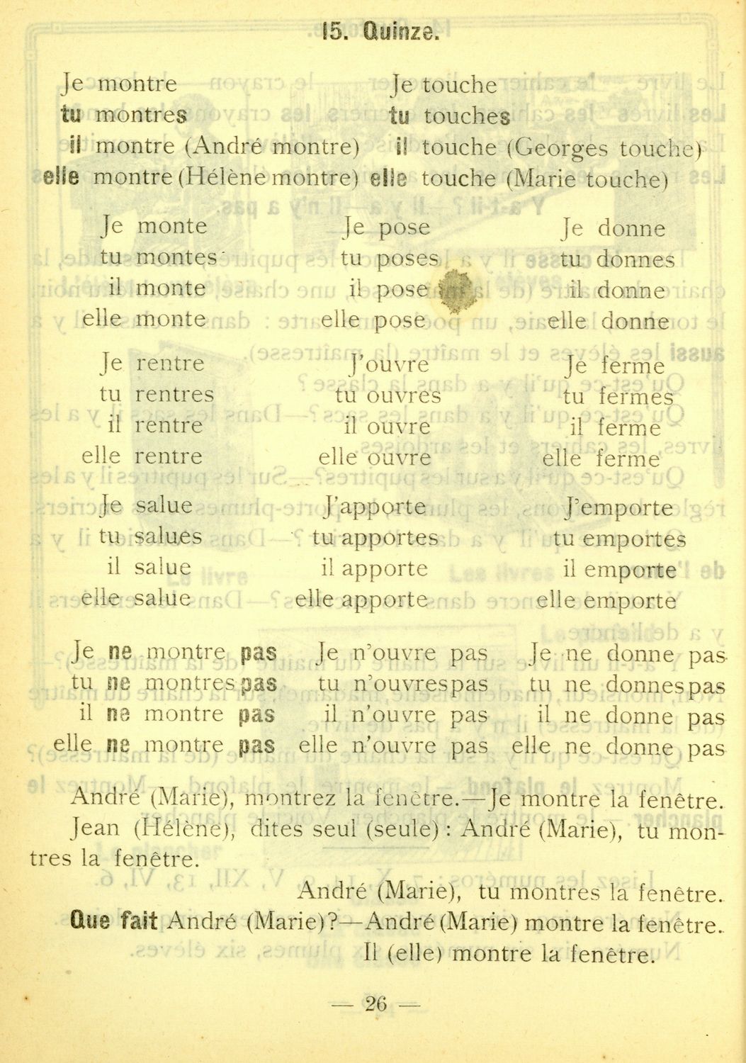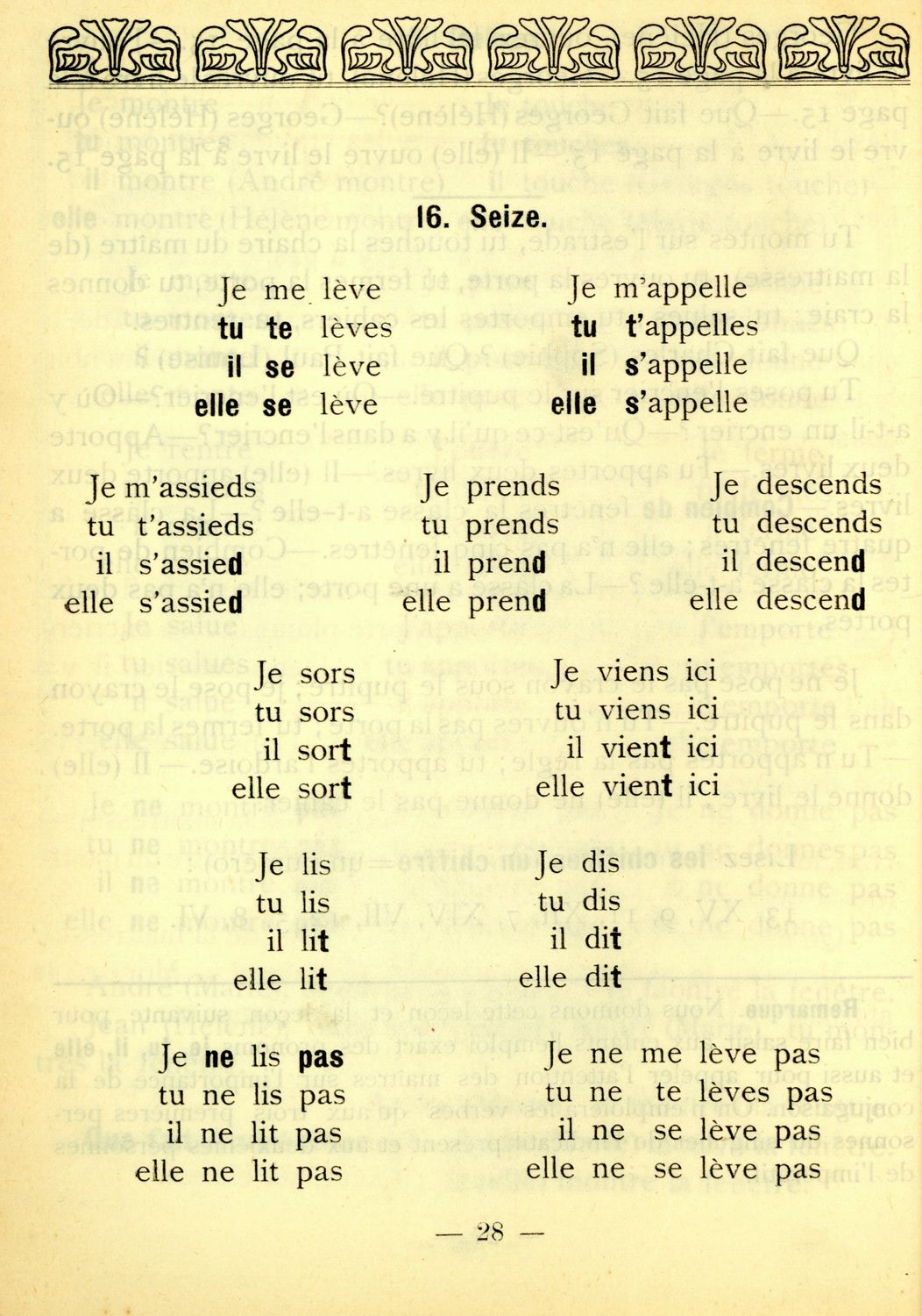 Σχολικό εγχειρίδιο Γαλλικών για τα Ελληνικά Σχολεία που περιέχει τους βασικούς κανόνες γραμματικής της γαλλικής γλώσσας καθώς και σειρά ασκήσεων για πρακτική εξάσκηση των μαθητών. Περιλαμβάνεται και λεξιλόγιο.