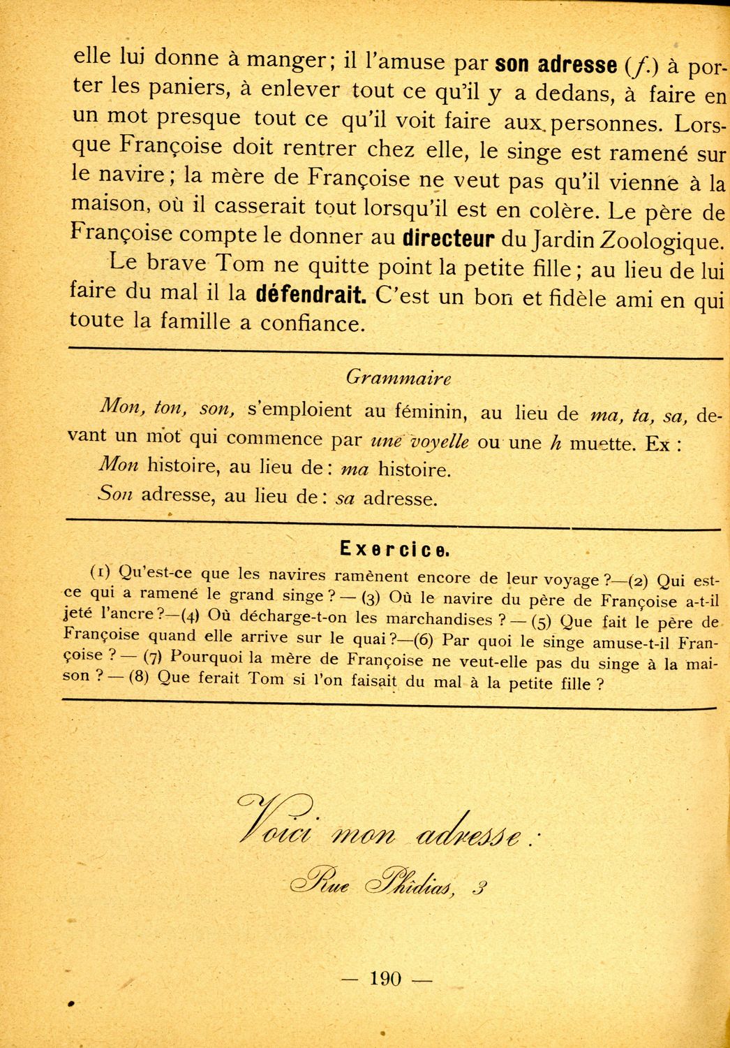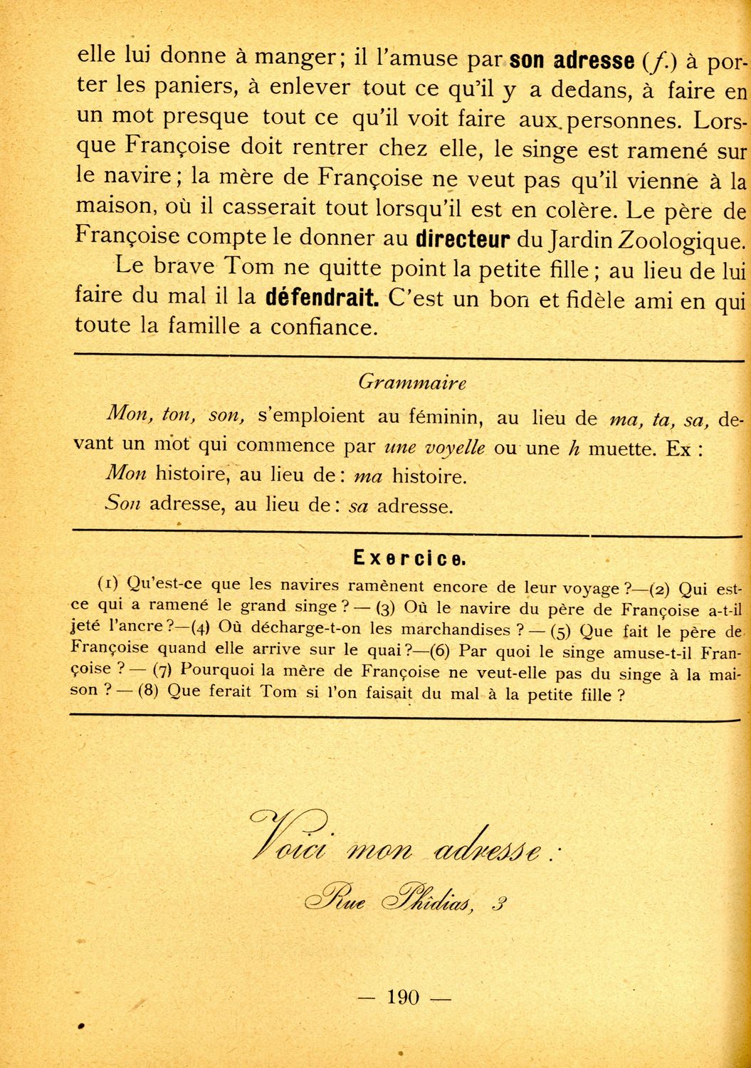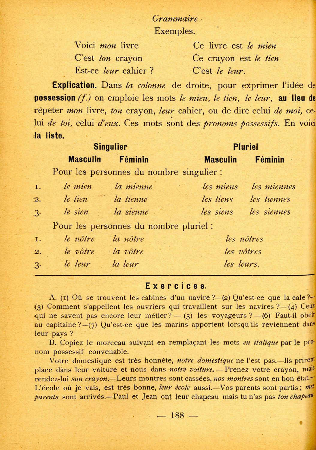 Σχολικό εγχειρίδιο Γαλλικών για τα Ελληνικά Σχολεία που περιέχει τους βασικούς κανόνες γραμματικής της γαλλικής γλώσσας καθώς και σειρά ασκήσεων για πρακτική εξάσκηση των μαθητών. Περιλαμβάνεται και λεξιλόγιο.