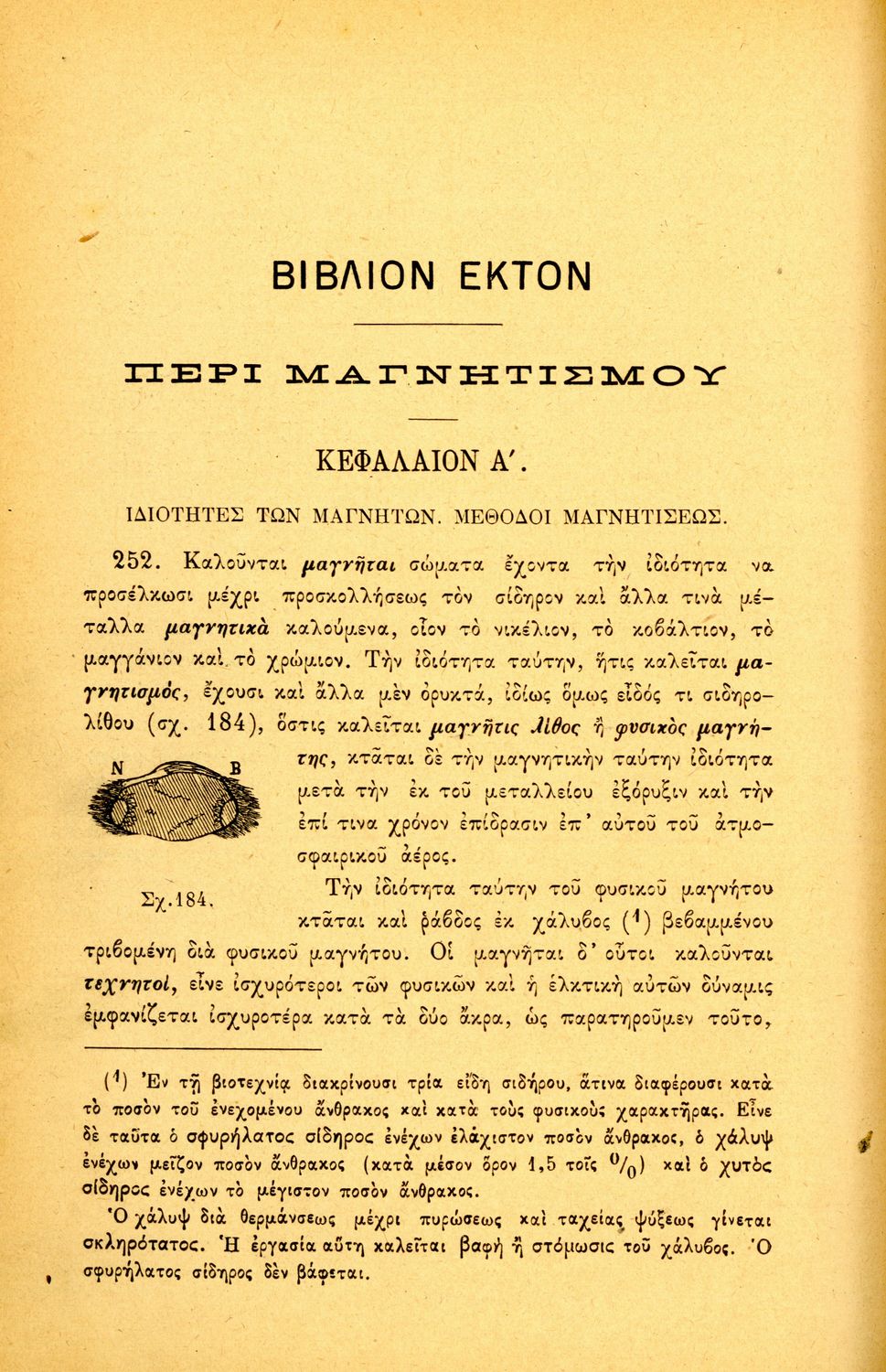 Σχολικό εγχειρίδιο Φυσικής Ιστορίας για τα Ελληνικά Σχολεία και Παρθεναγωγεία που περιλαμβάνει στοιχεία ζωολογίας και της φυτολογίας και διακρίνει τα ζώα και τα φυτά ανάλογα με την συνομοταξία στην οποία ...