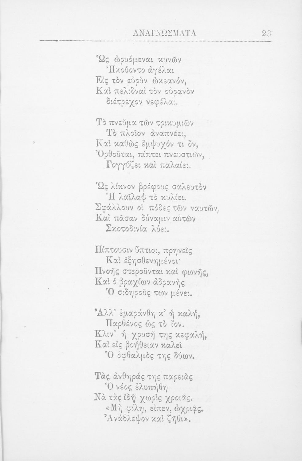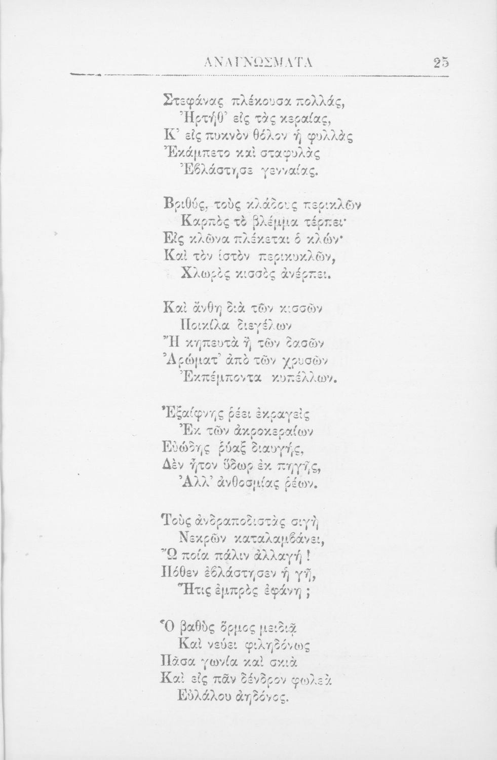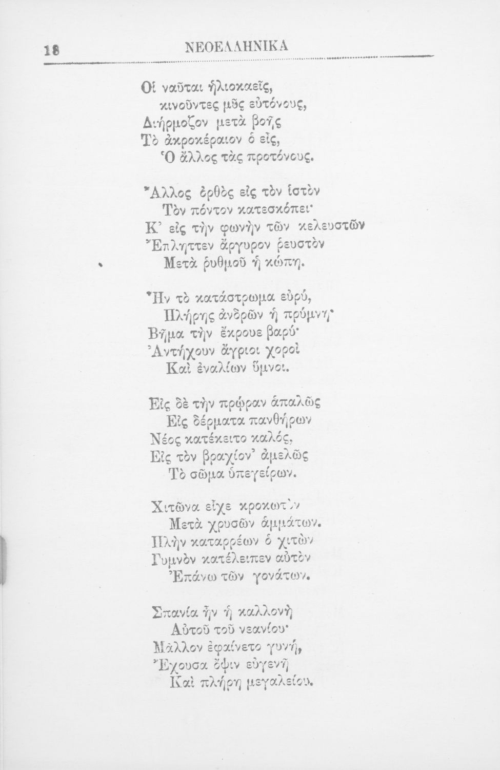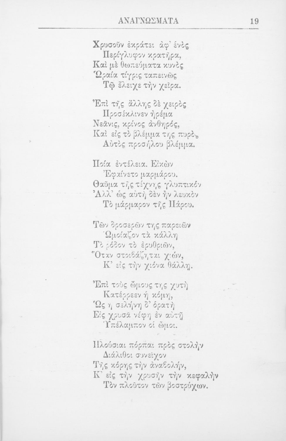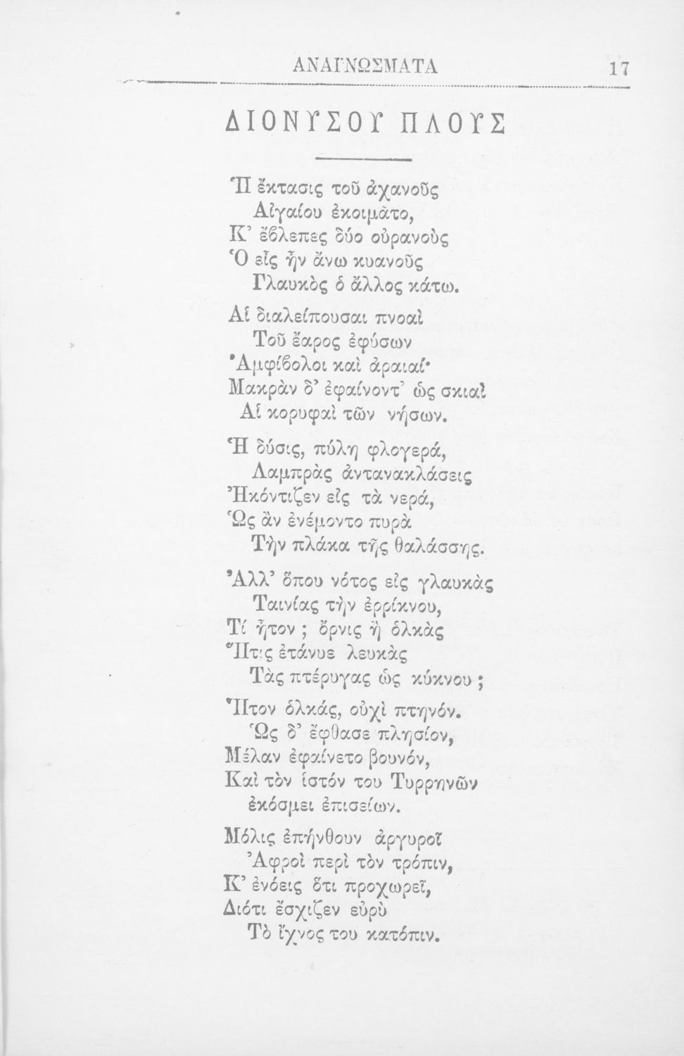 Σχολικό εγχειρίδιο Νέων Ελληνικών Γ' Ελληνικού Σχολείου που περιλαμβάνει ποιήματα και πεζά εμπνευσμένα από την αρχαία, βυζαντινή και νεώτερη ιστορία της Ελλάδας αλλά και από την θρησκευτική παράδοση και τα τοπικά ήθη και έθιμα.