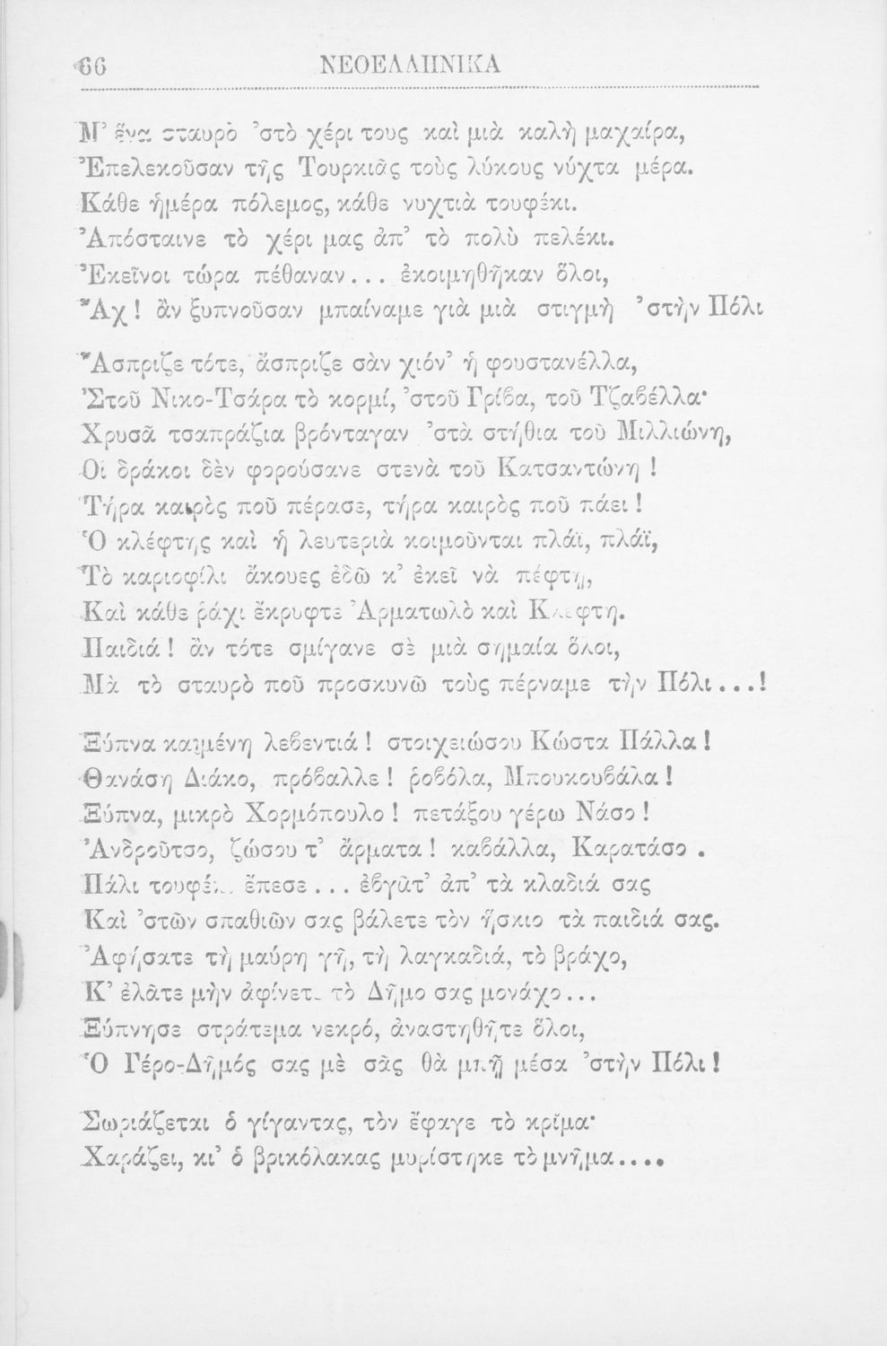 Σχολικό εγχειρίδιο Νέων Ελληνικών Γ' Ελληνικού Σχολείου που περιλαμβάνει ποιήματα και πεζά εμπνευσμένα από την αρχαία, βυζαντινή και νεώτερη ιστορία της Ελλάδας αλλά και από την θρησκευτική παράδοση και τα τοπικά ήθη και έθιμα.