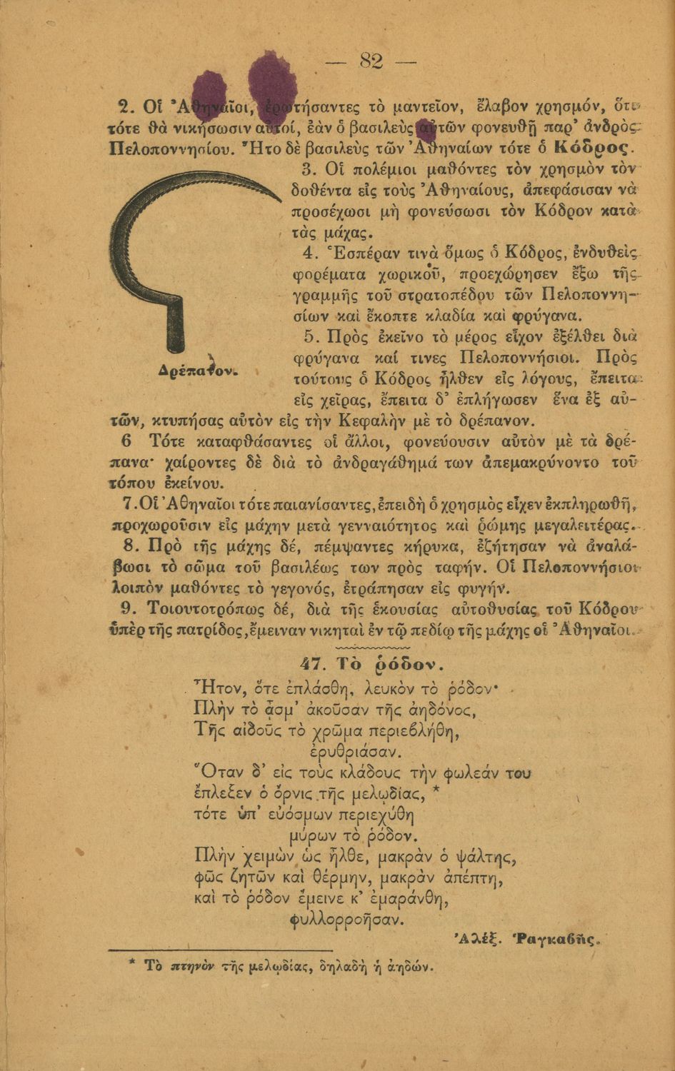 Σχολικό εγχειρίδιο Νέων Ελληνικών ΣΤ΄ Δημοτικού και Β' Ελληνικού Σχολείου που περιλαμβάνει πεζά και ποιήματα εμπνευσμένα από την ελληνική ιστορία και μυθολογία, και τα φυσικά φαινόμενα.
