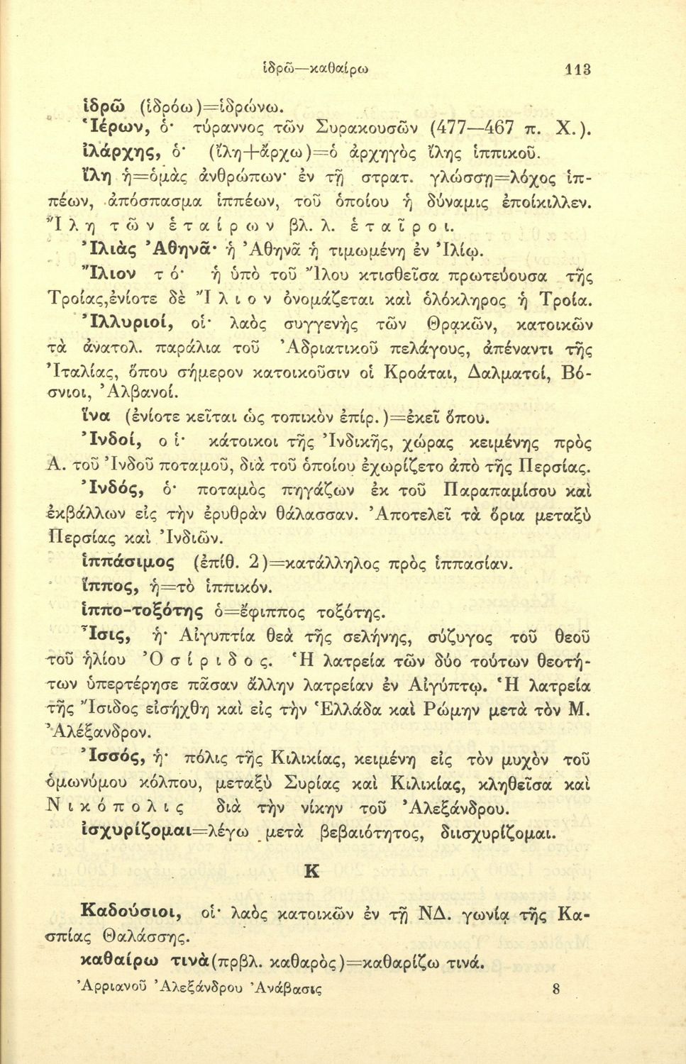 Σχολικό εγχειρίδιο Αρχαίων Ελληνικών Γ΄ Γυμνασίου που περιλαμβάνει το έργο του Αρριανού Αλεξάνδρου Ανάβασις, εισαγωγή στη βιογραφία και εργογραφία του Αρριανού, λεξιλόγιο και λεξιλογικά σχόλια, εικόνες στρατιωτών και όπλων της περιόδου.
