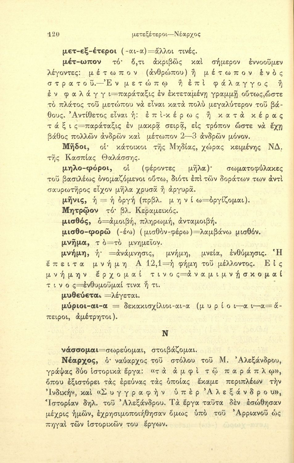 Βαθμίδα εκπαίδευσης: Δευτεροβάθμια Τάξη: Γ' Γυμνασίου Μάθημα: Αρχαία Ελληνικά Γλώσσα: Καθαρεύουσα Παρουσίαση περιεχομένου: Σχολικό εγχειρίδιο Αρχαίων Ελληνικών Γ΄ Γυμνασίου που περιλαμβάνει το έργο του Αρριανού Αλεξάνδρου Ανάβασις, εισαγωγή στη βιογραφία και εργογραφία του Αρριανού, λεξιλόγιο και λεξιλογικά σχόλια, εικόνες στρατιωτών και όπλων της περιόδου. |