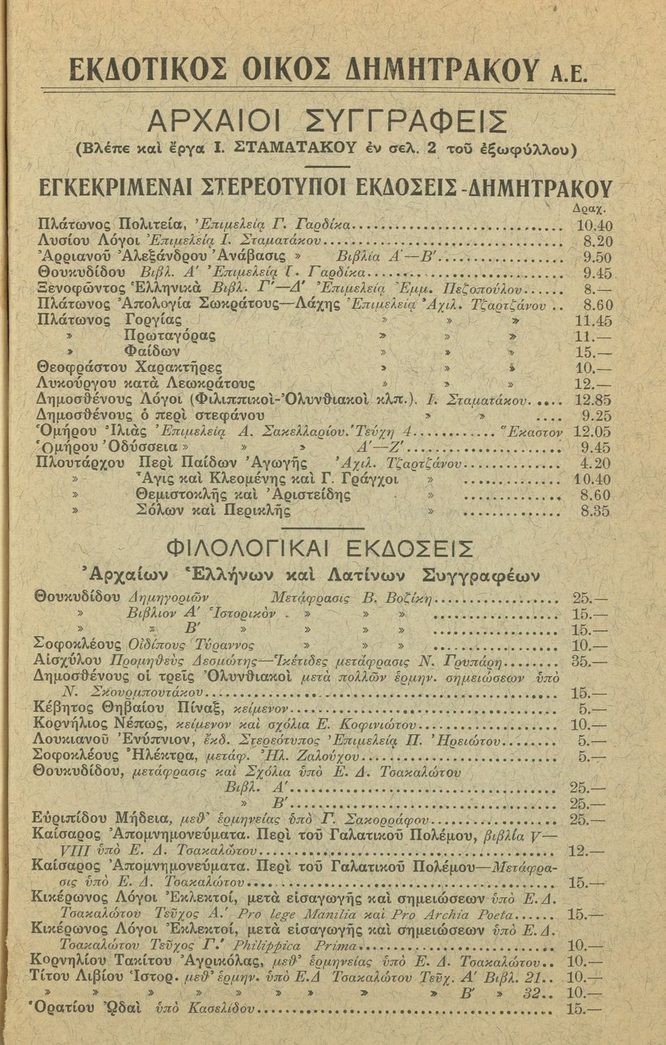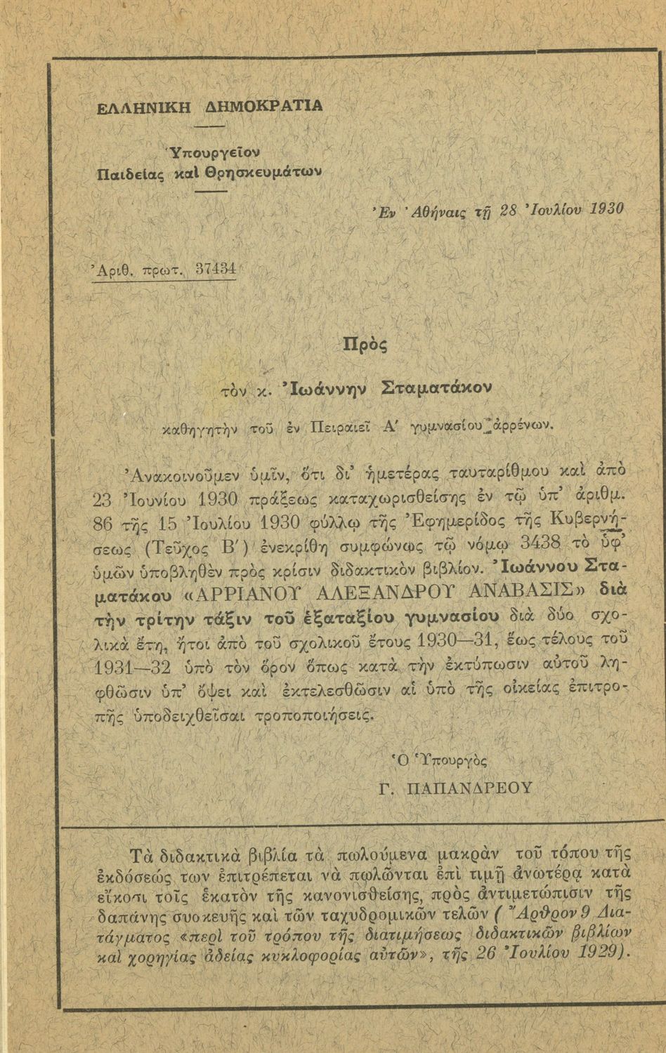 Εκδότης: Δημητράκος Έτος έκδοσης: 1930 Τόπος έκδοσης: Αθήνα Υπουργική απόφαση / Σύμβαση: 37434/28-7-1930 Έτος έγκρισης: 1930 |