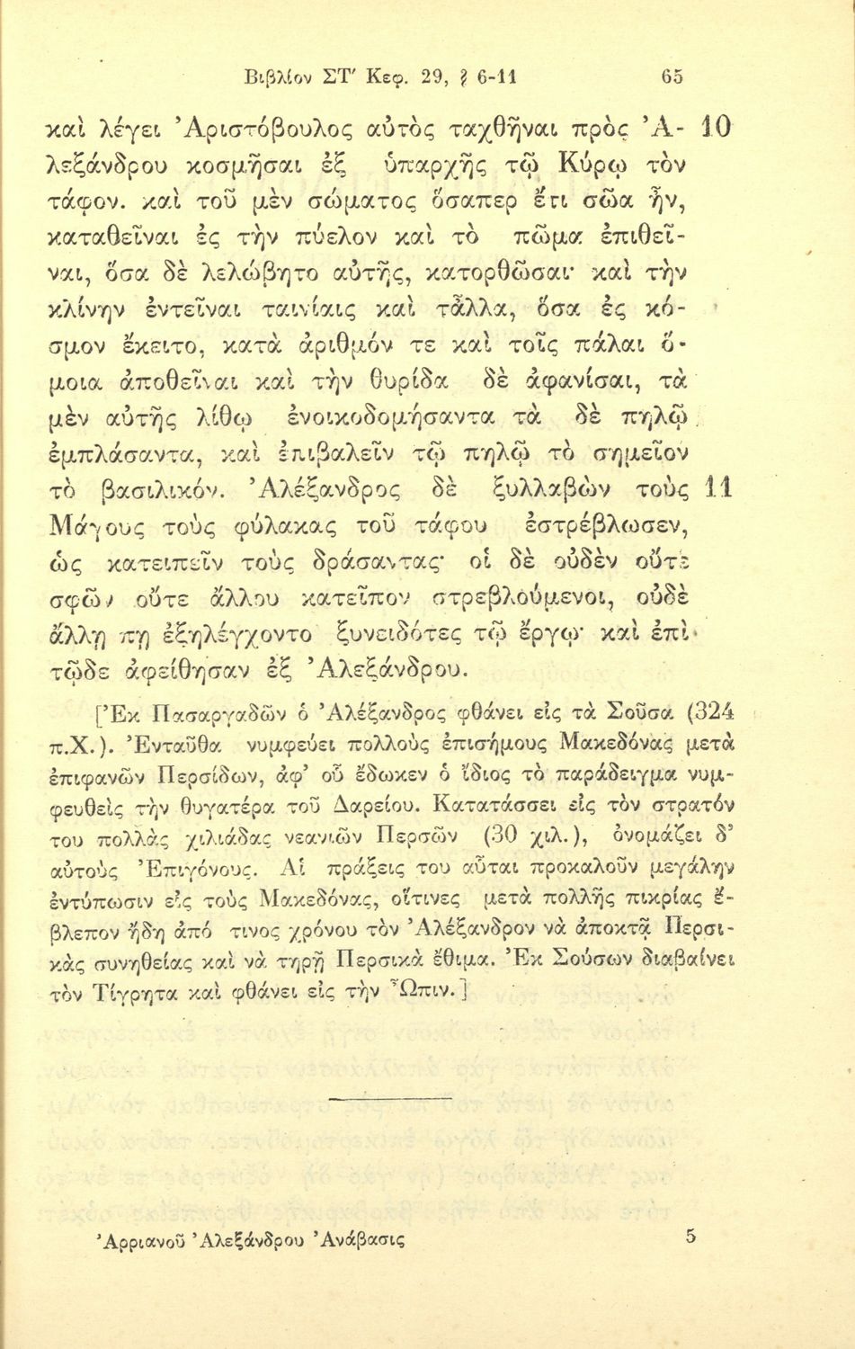 Αρριανού Αλεξάνδρου Ανάβασις (εκλογαί) κείμενον - εισαγωγή - λεξιλόγιον