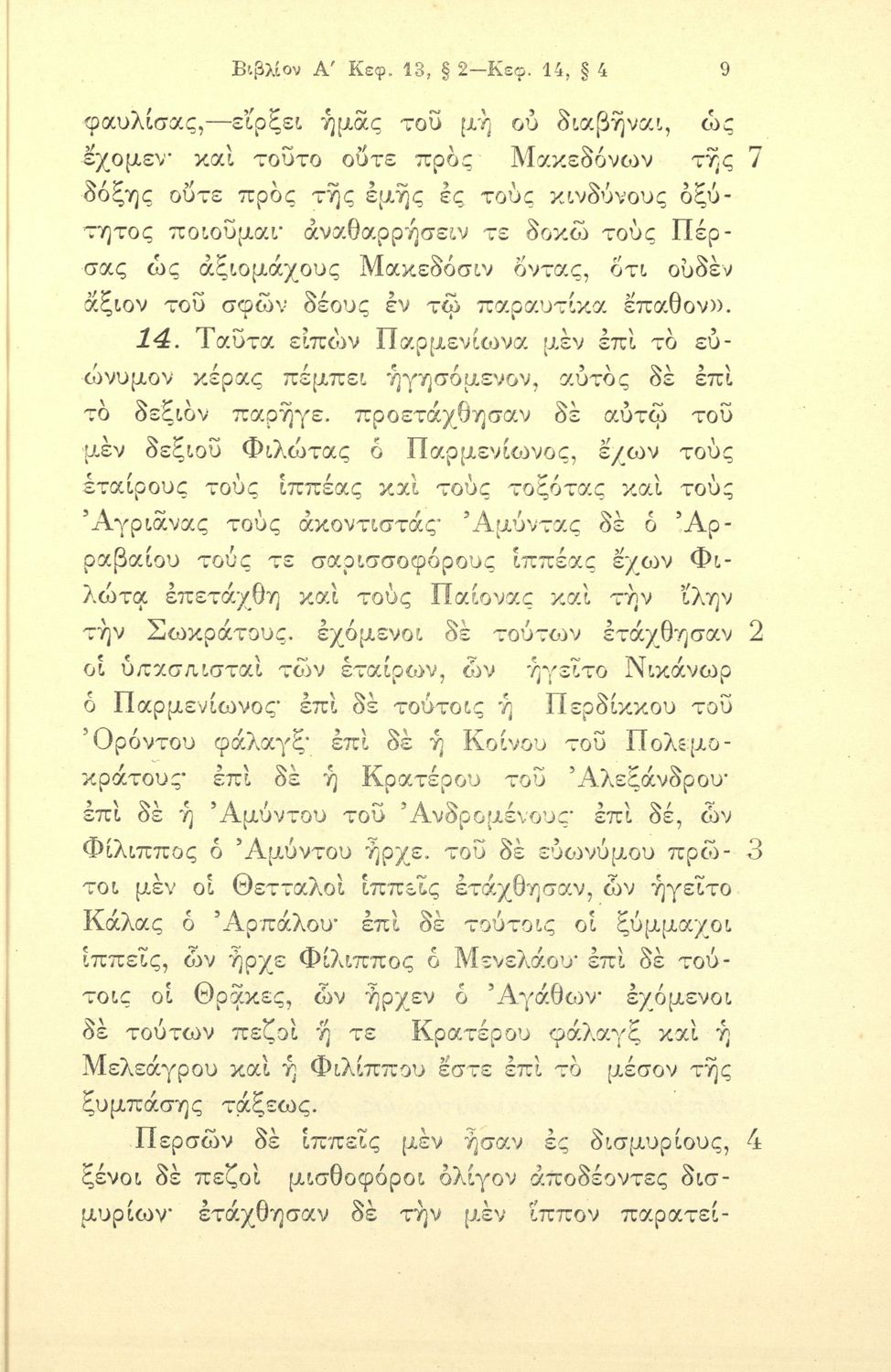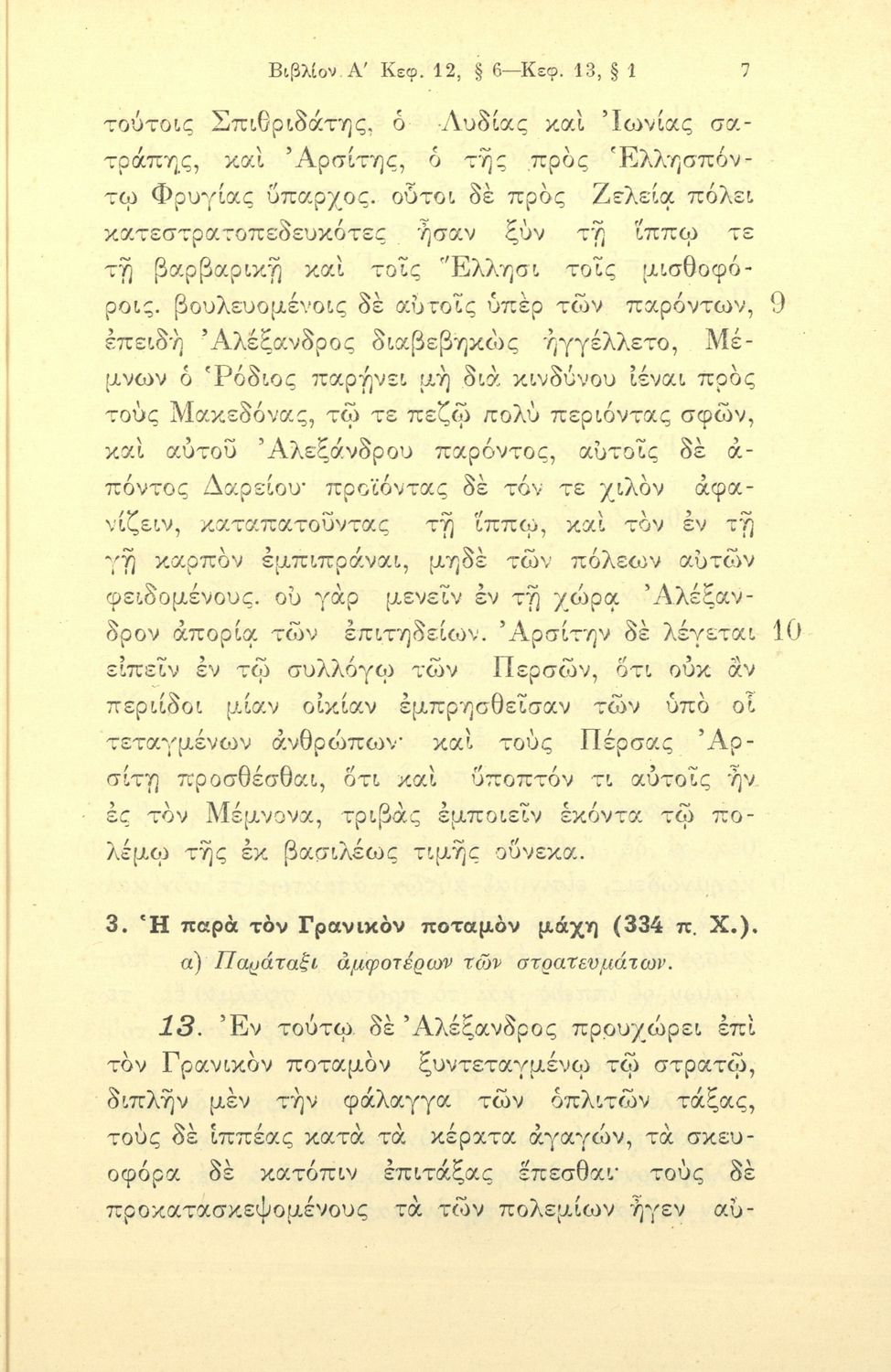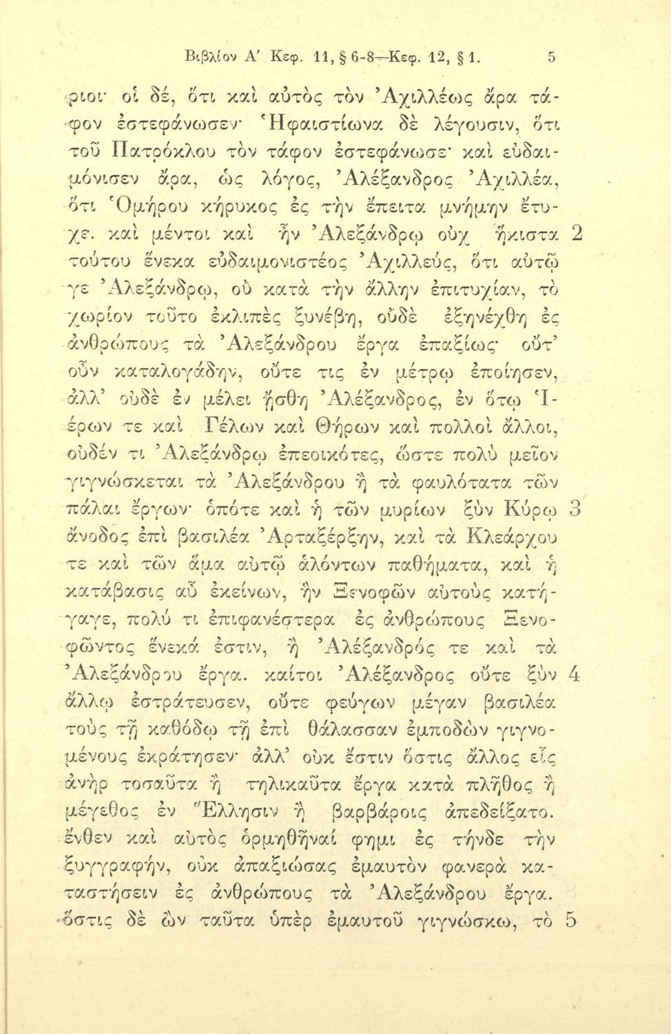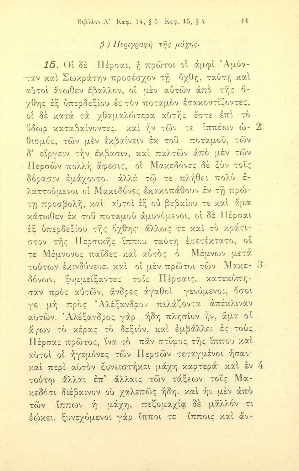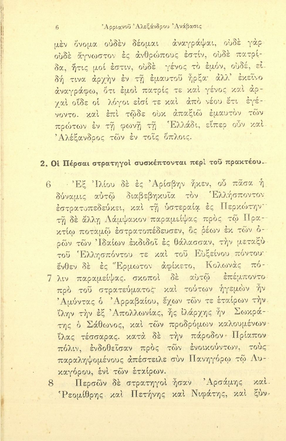 Σχολικό εγχειρίδιο Αρχαίων Ελληνικών Γ΄ Γυμνασίου που περιλαμβάνει το έργο του Αρριανού Αλεξάνδρου Ανάβασις, εισαγωγή στη βιογραφία και εργογραφία του Αρριανού, λεξιλόγιο και λεξιλογικά σχόλια, εικόνες στρατιωτών και όπλων της περιόδου.