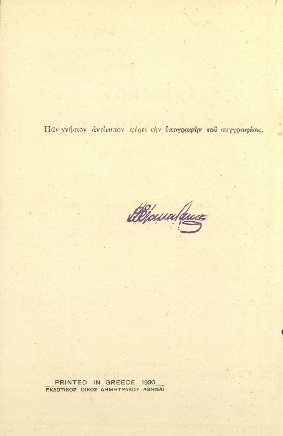 Εκδότης: Δημητράκος Έτος έκδοσης: 1930 Τόπος έκδοσης: Αθήνα Υπουργική απόφαση / Σύμβαση: 37434/28-7-1930 Έτος έγκρισης: 1930 |