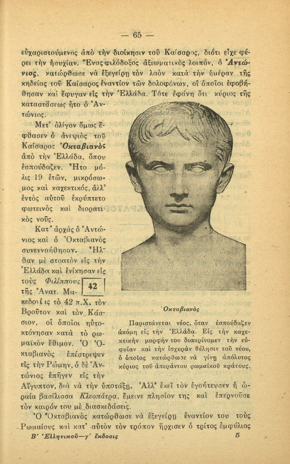 Κωδικός αναγνώρισης: 20-04261 Τίτλος: Ελληνική ιστορία από της εν Ιψώ μάχης (301 π.Χ.) μέχρι της αλώσεως της Κων/πόλεως υπό των Φράγκων (1204 μ.Χ.) δια την Δευτέραν τάξιν του Ελληνικού Σχολείου και τας αντιστοίχους των άλλων σχολείων της Μέσης Εκπαιδεύσεως Συγγραφέας: Χ. Θεοδωρίδης, Α. Λαζάρου Μέγεθος και υπόστρωμα: Σχολικό εγχειρίδιο, 20εκ., μαλακό εξώφυλλο, 162 σελίδες. Σκίτσα (ασπρόμαυρα). |