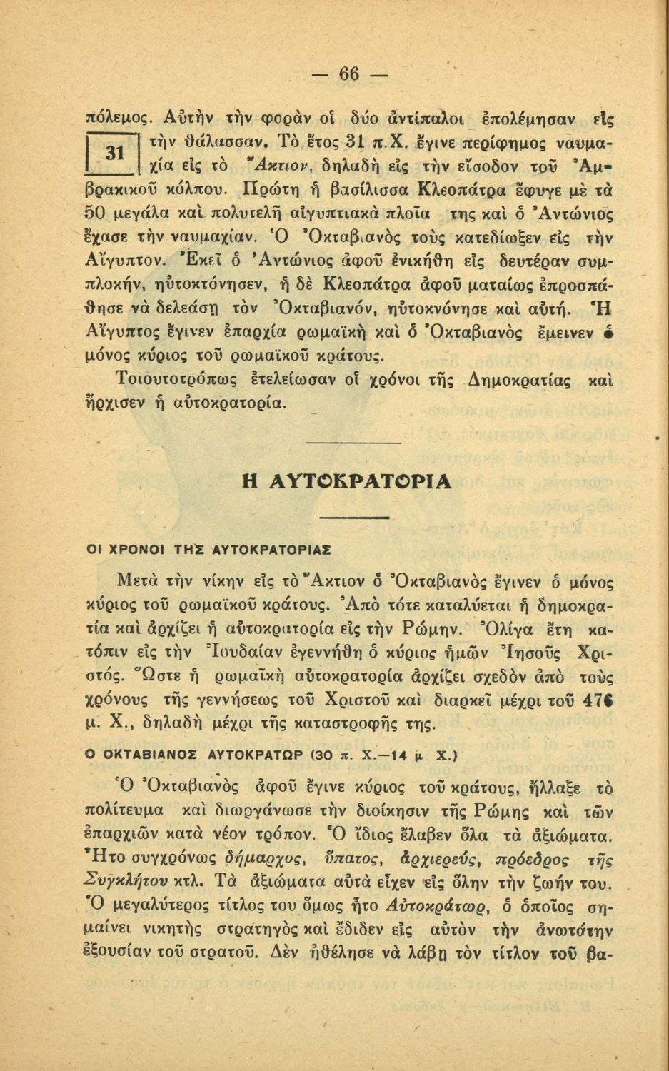 Βαθμίδα εκπαίδευσης: Δευτεροβάθμια Τάξη: Β' Ελληνικού Σχολείου Μάθημα: Ιστορία Γλώσσα: Καθαρεύουσα Παρουσίαση περιεχομένου: Σχολικό εγχειρίδιο Ιστορίας Β' Ελληνικού Σχολείου που καλύπτει την περίοδο από τους Αλεξανδρινούς και Ελληνιστικούς χρόνους μέχρι την άλωση της Κωνσταντινούπολης από τους Φράγκους. |