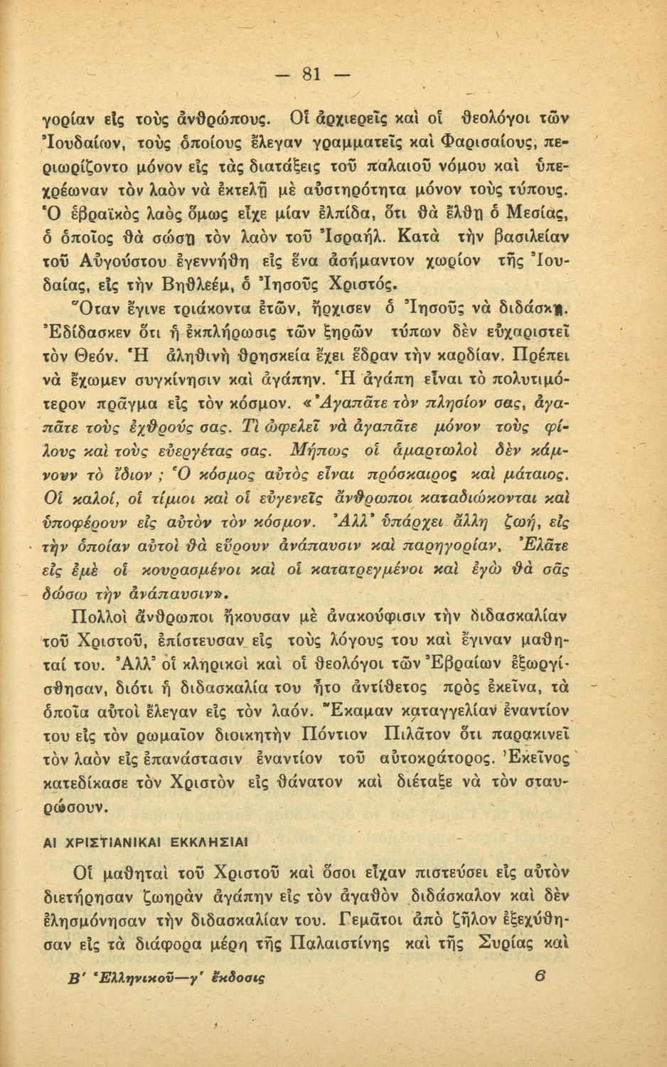 Κωδικός αναγνώρισης: 20-04261 Τίτλος: Ελληνική ιστορία από της εν Ιψώ μάχης (301 π.Χ.) μέχρι της αλώσεως της Κων/πόλεως υπό των Φράγκων (1204 μ.Χ.) δια την Δευτέραν τάξιν του Ελληνικού Σχολείου και τας αντιστοίχους των άλλων σχολείων της Μέσης Εκπαιδεύσεως Συγγραφέας: Χ. Θεοδωρίδης, Α. Λαζάρου Μέγεθος και υπόστρωμα: Σχολικό εγχειρίδιο, 20εκ., μαλακό εξώφυλλο, 162 σελίδες. Σκίτσα (ασπρόμαυρα). |