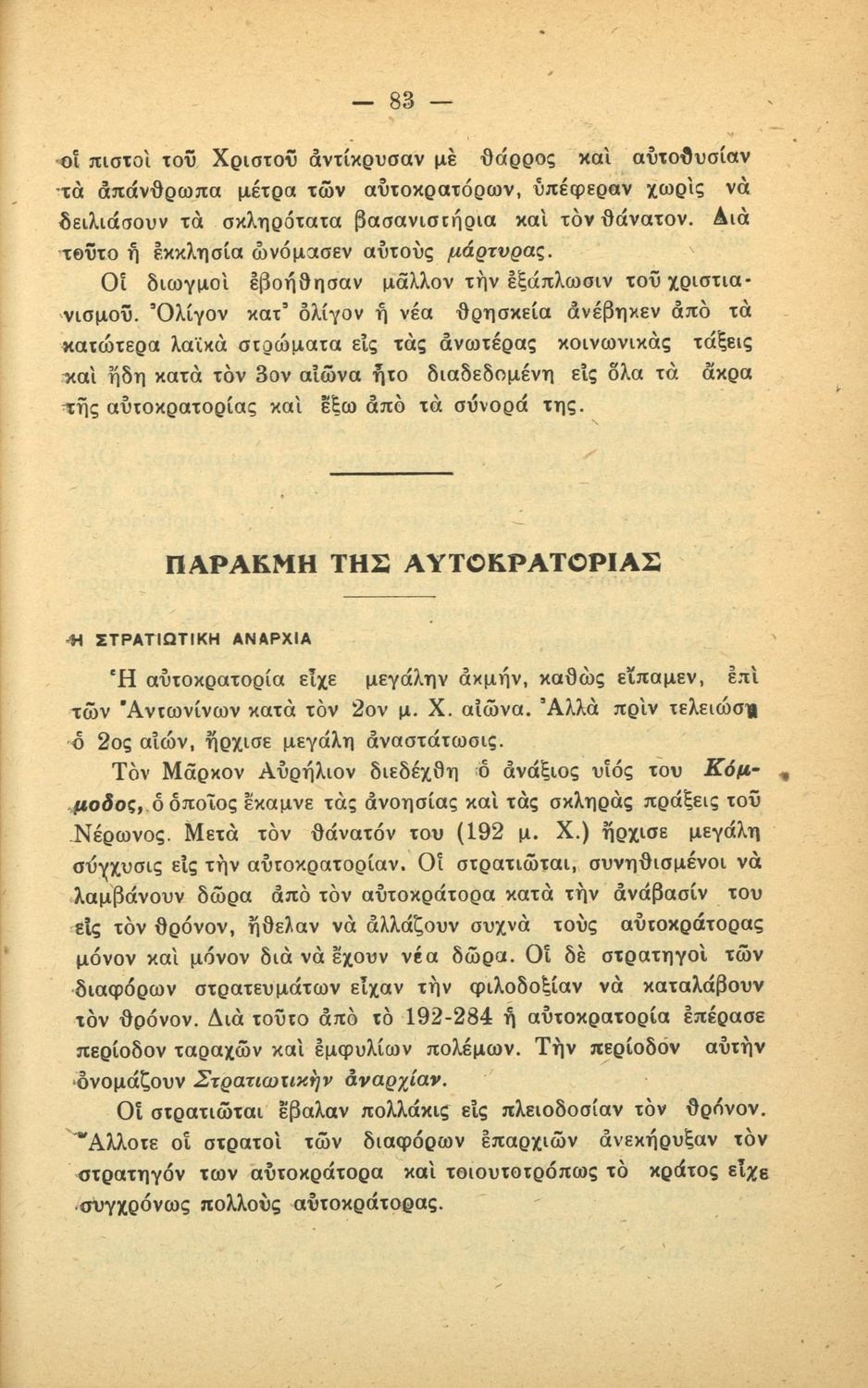 Βαθμίδα εκπαίδευσης: Δευτεροβάθμια Τάξη: Β' Ελληνικού Σχολείου Μάθημα: Ιστορία Γλώσσα: Καθαρεύουσα Παρουσίαση περιεχομένου: Σχολικό εγχειρίδιο Ιστορίας Β' Ελληνικού Σχολείου που καλύπτει την περίοδο από τους Αλεξανδρινούς και Ελληνιστικούς χρόνους μέχρι την άλωση της Κωνσταντινούπολης από τους Φράγκους. |